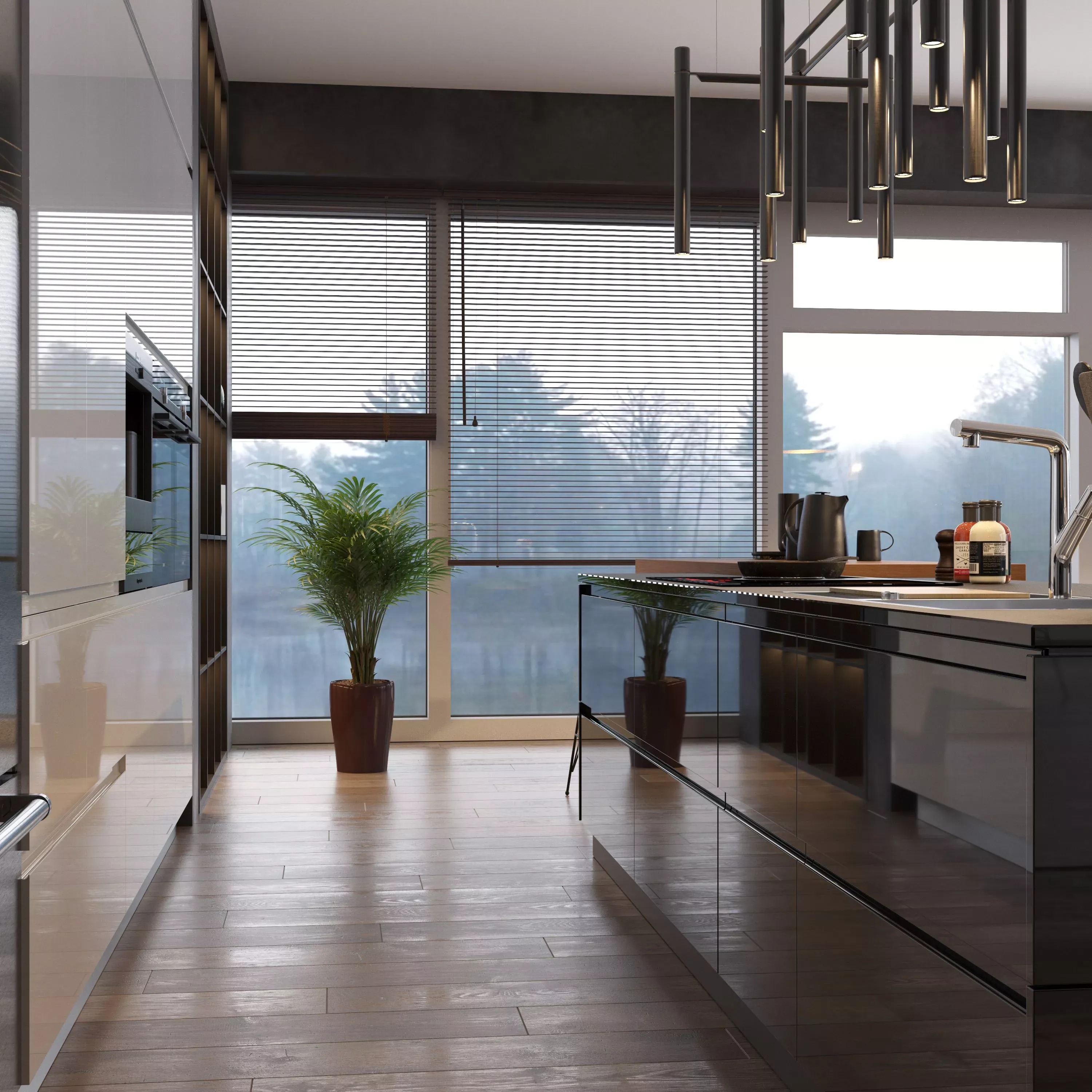 Модель изготавливается на заказ. Для этого после оформления заявки мы запрашиваем результаты измерения вашего помещения, чтобы выполнить кухню по индивидуальным размерам. За счет большого количества деталей у вас всегда будет под рукой вся техника и посуда. Напольные колонны под встраиваемую технику создают стилистическое единство гарнитура.