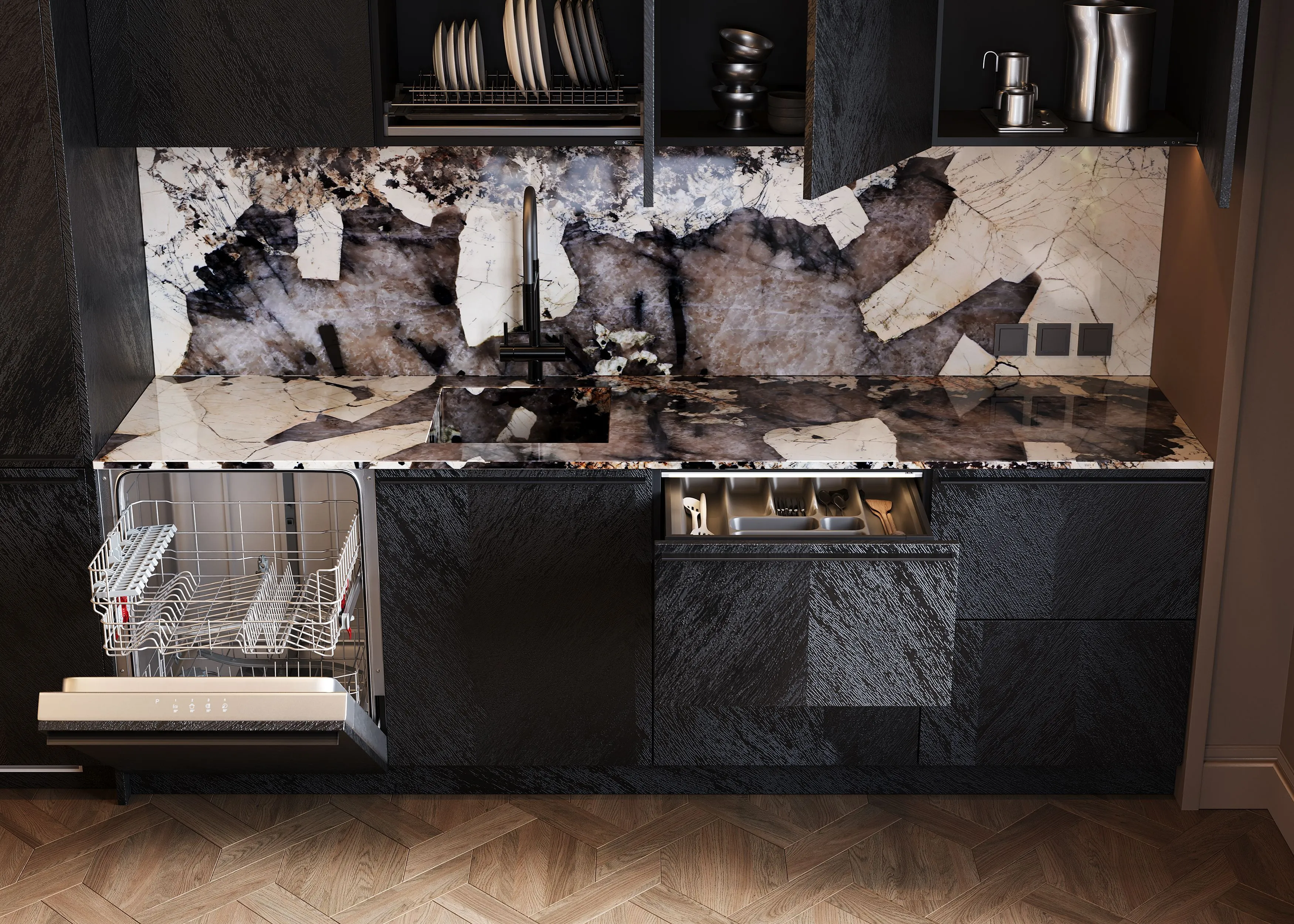 Фасады из TSS в декоре Роквуд Обсидиан (ZU) — изысканные благородные оттенки. Строгая элегантность создает эффект безупречного стиля. Утончённая гармония для избранных.