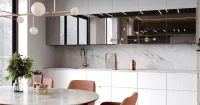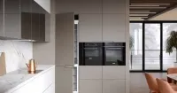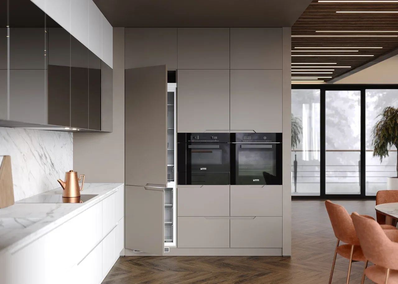 Светлая кухня г-образной формы — это элегантное и современное интерьерное решение. Оно подойдет и для небольших отдельных кухонь, и для квартир-студий. Главное преимущество этого гарнитура в удобстве его использования — все элементы, от бытовой техники до раковины или обеденной зоны, находятся рядом, на расстоянии руки. Светлая палитра позволит вписать эту модель в любой интерьер, а также визуально увеличит пространство. Конструкция со встроенной бытовой техникой выглядит единым блоком — это стильно и соответствует нынешним модным тенденциям, к тому же не придется постоянно стирать пыль с верхних поверхностей микроволновки и духовки. Модели от производителя, выполненные нашей фабрикой, всегда соответствуют самым современным стандартам.