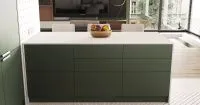 Матовые фасады модели не будут бликовать, к тому же на них меньше видны загрязнения. Дверцы и ящики открываются по методу «Push-to-Open» («нажал-открыл»), поэтому вы не зацепитесь одеждой за торчащую ручку. Светлая столешница создает ощущение чистоты и свежести.