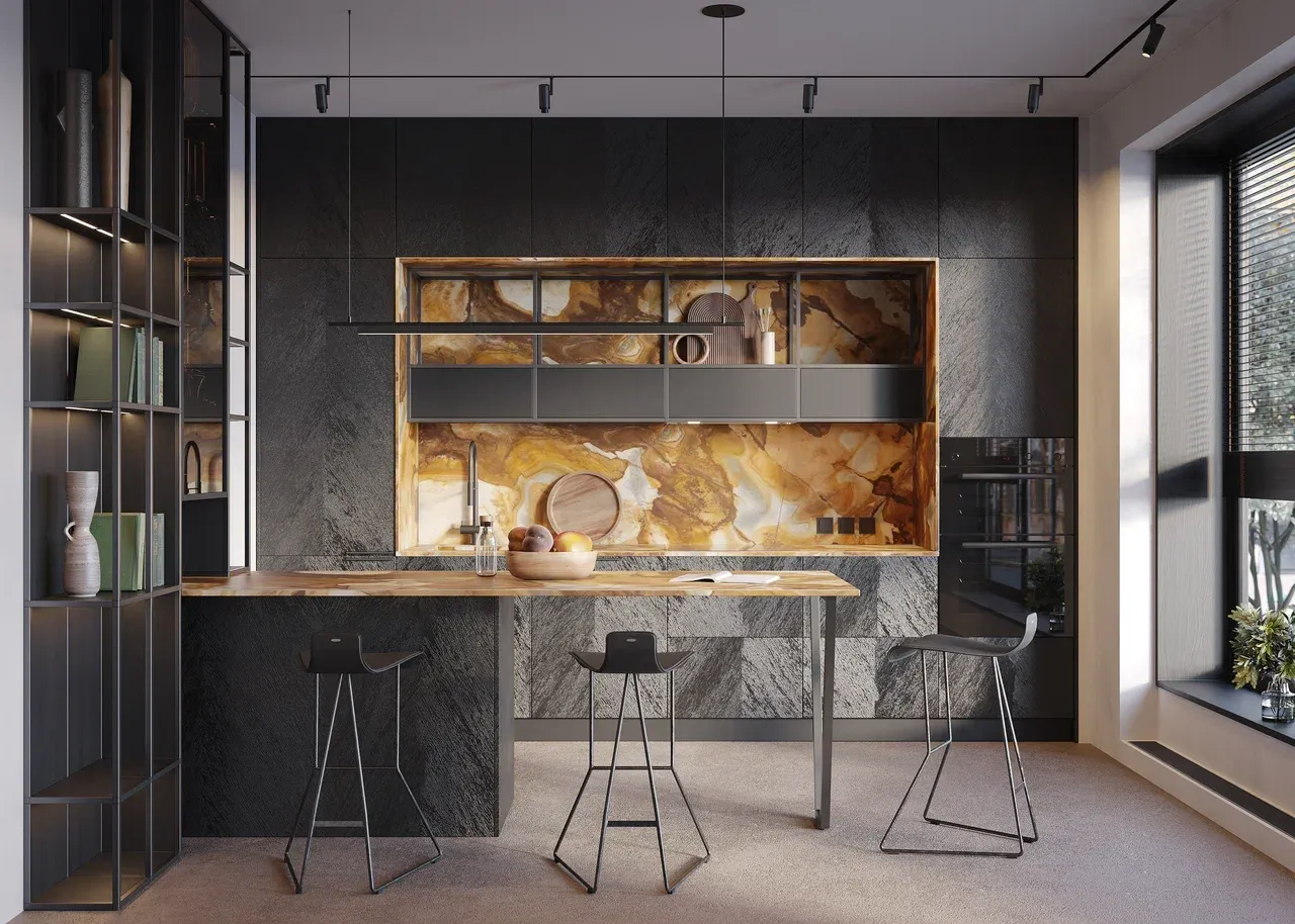Кухня темная со стеллажной системой «Кадро» (арт. 291)