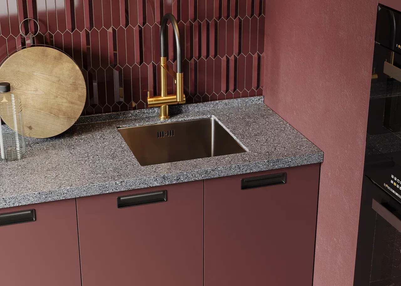 Угловая кухня со столешницей из акрилового камня — это стильное и практичное решение для вашей кухни. Благодаря уникальной форме и столешнице из искусственного камня, она станет не только функциональным, но и эстетически привлекательным элементом вашего интерьера.