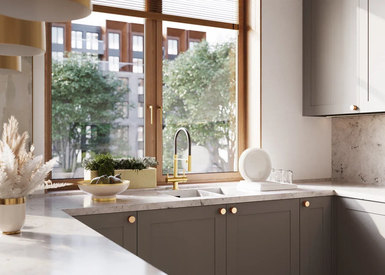 Акриловая столешница — истинное украшение современной кухни в стиле модерн. Этот инновационный материал, имитирующий природный камень, поражает своей практичностью и долговечностью. Матовое покрытие не только создаёт элегантный внешний вид, но и надёжно защищает поверхность от царапин и повреждений.