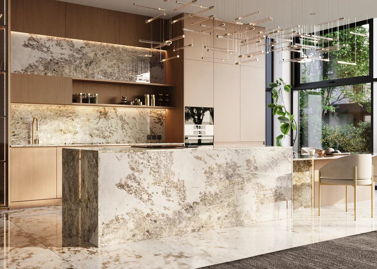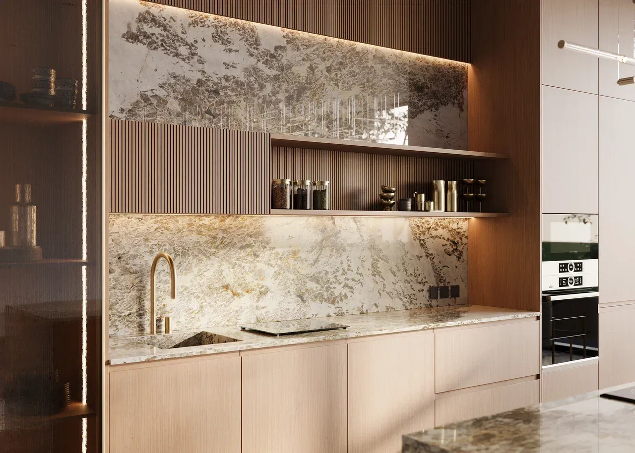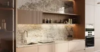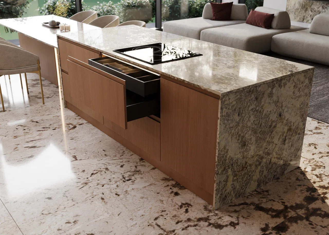 Кухня в стиле модерн с островом и гранитной столешницей — лаконичный шик и безупречная функциональность. Гладкие линии, сдержанная палитра и благородная текстура натурального гранита создают гармоничное пространство, где эргономика встречается с вневременной элегантностью.