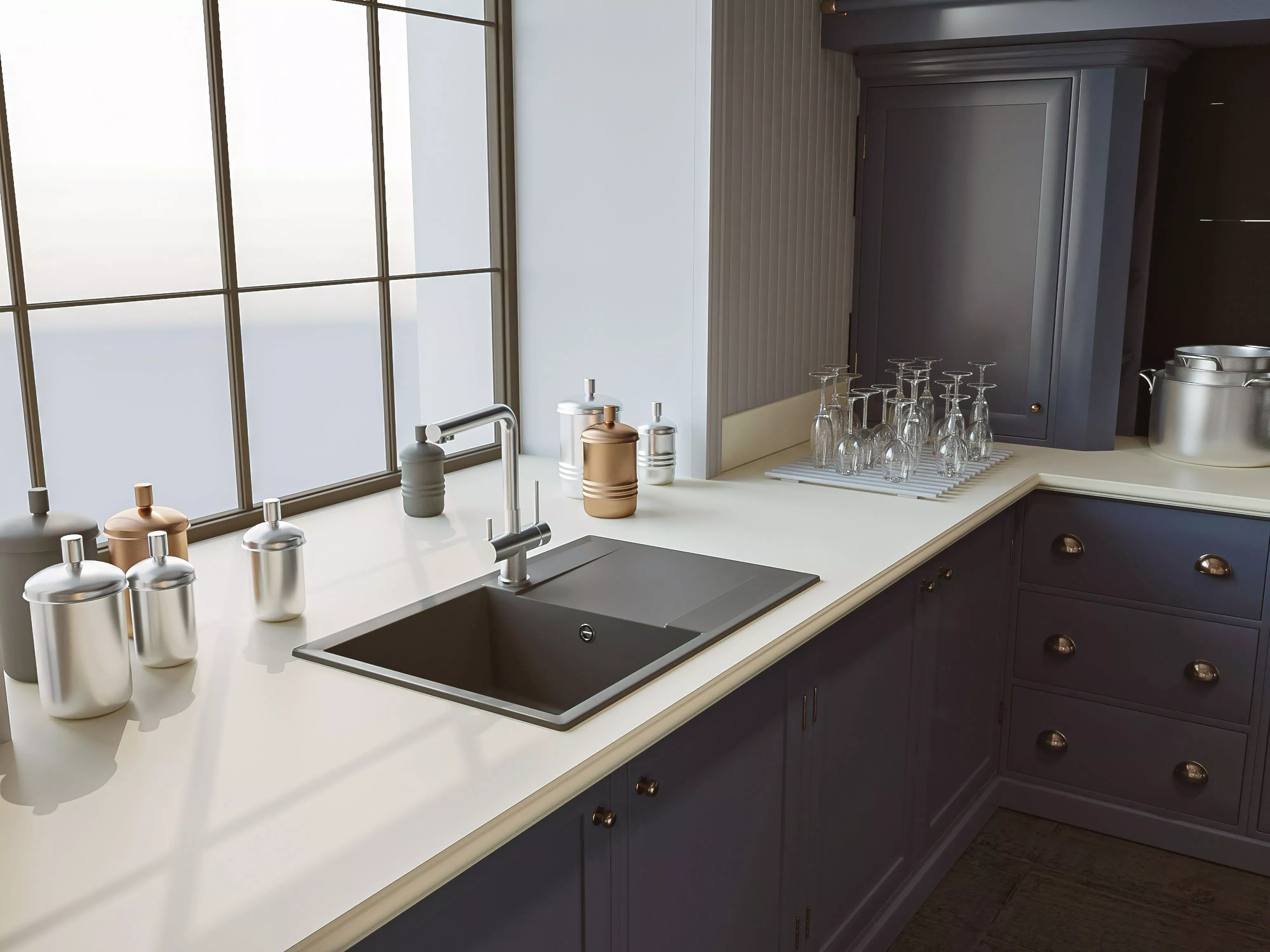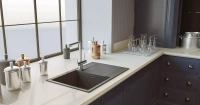 Капли воды не растекаются по поверхности мойки, обеспечивая низкую степень увлажнения и загрязнения.