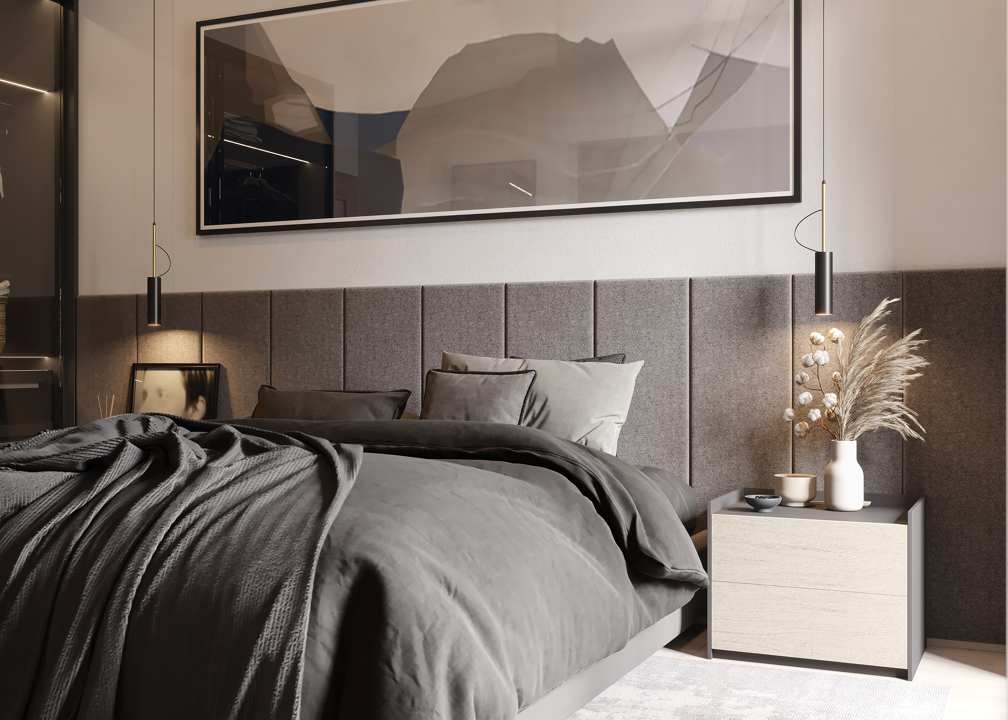 Кроме декоративной, мягкие панели из велюра от производителя выполняют и практическую функцию. Они частично защищают от шума и могут заменить изголовье (если у кровати его нет). На них можно комфортно облокотиться вечером и хорошо провести время за просмотром любимого сериала.