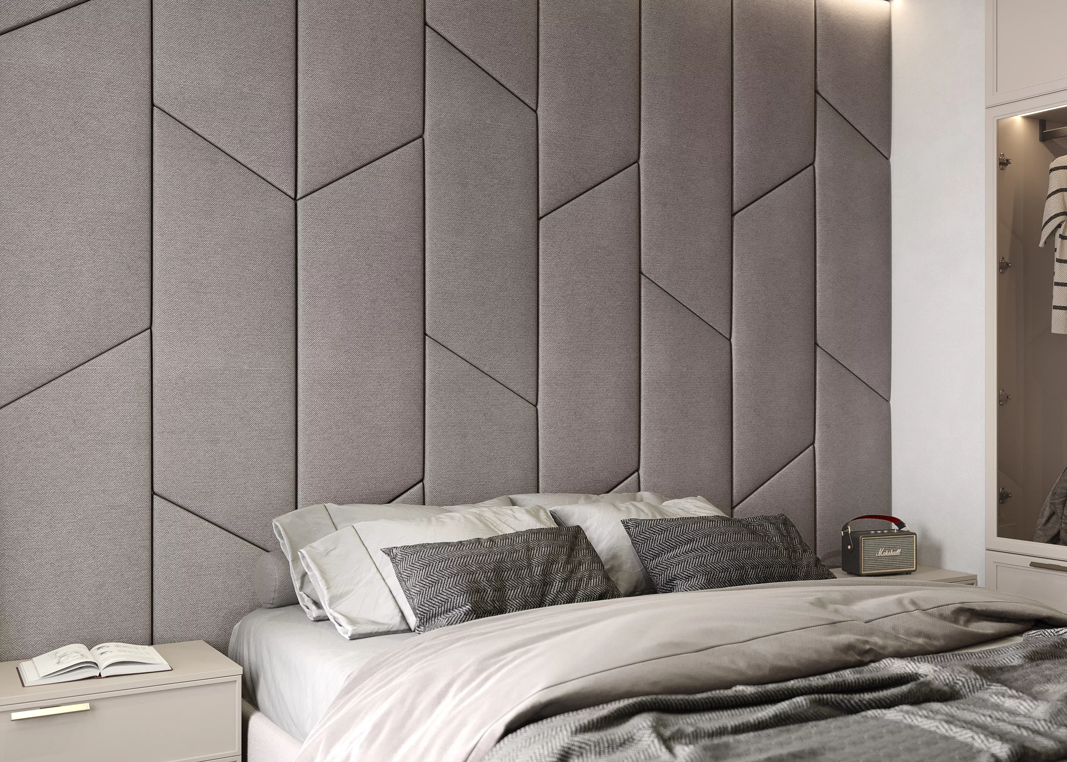 Мягкие стеновые панели в спальню Art Design, серые