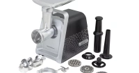 Корпус выполнен из прочного пищевого ABS-пластика, а лоток – из металла. Габаритные размеры мясорубки составляют 30х27х24 см, а вес нетто 3,61 кг, при этом её брутто вес составляет 4,23 кг. Длина сетевого шнура – 0,8 метра. Стильный черный цвет делает этот прибор не только функциональным, но и эстетически привлекательным дополнением к любой кухне.