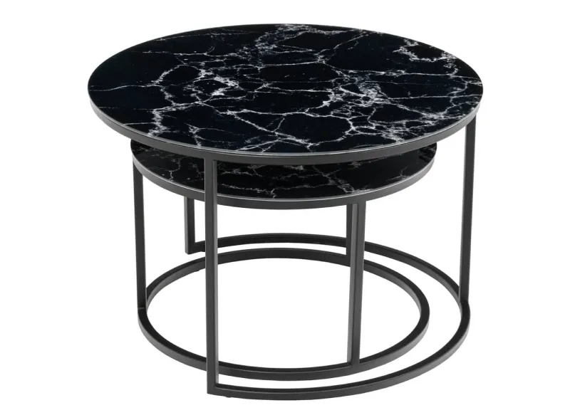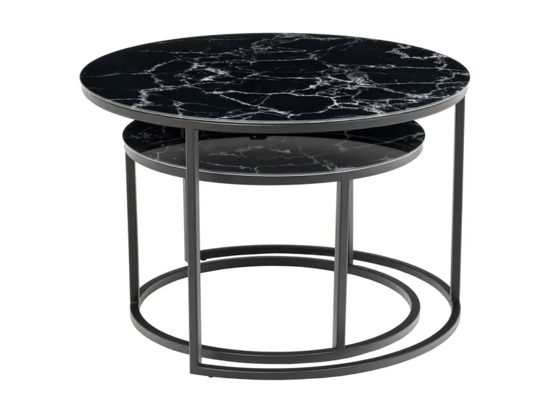 Элегантная пара кофейных столиков Tango станет изящным дополнением любой гостинной или даже спальни. Рисунок на столешнице, выполенной из закалённого стекла, завораживает и притягивает взгляд. Столики можно расположить парой или расставить по отдельности. Чёрные ножки позволят вписать этот набор в любой интерьер. Размер большого столика: диаметр - 60х41см. Размер маленького столика: диаметр - 47,5х31см