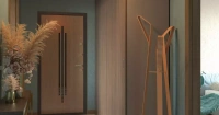 Если потянуть за ручку, дверь легко выдвинется вперёд, а затем, скользя по треку параллельно соседней двери, откатится вбок, закрыв её собой полностью).