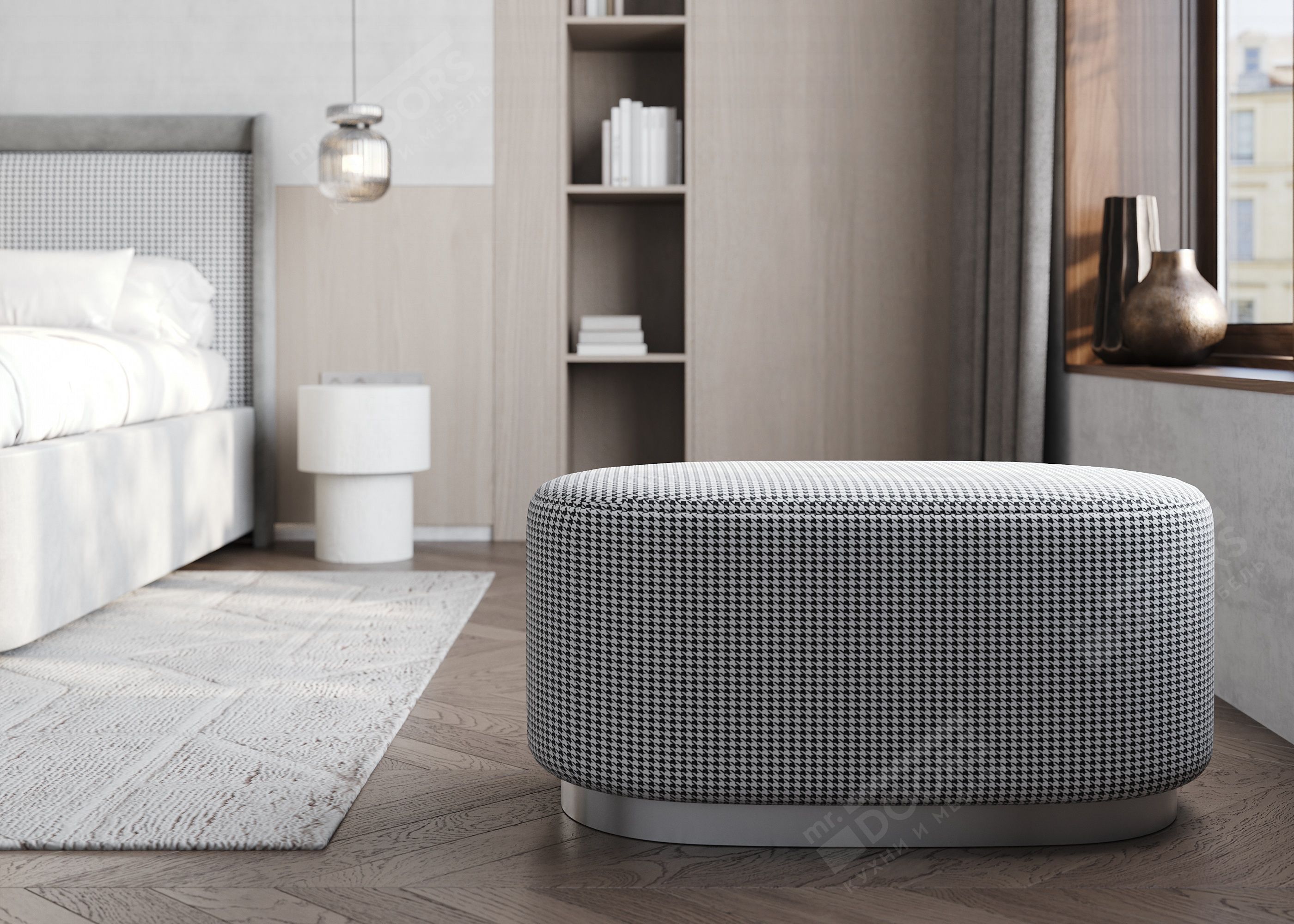 Овальный пуф Ponte O на декоративном основании идеально дополнит интерьер вашей спальни или гостиной, оформленной в современном стиле, придав ему завершенность и уют. Благодаря лаконичной форме, компактным размерам и многообразию декоров и цветов обивки пуф будет гармонично смотреться в сочетании с мебелью и отделкой в любой цветовой гамме.