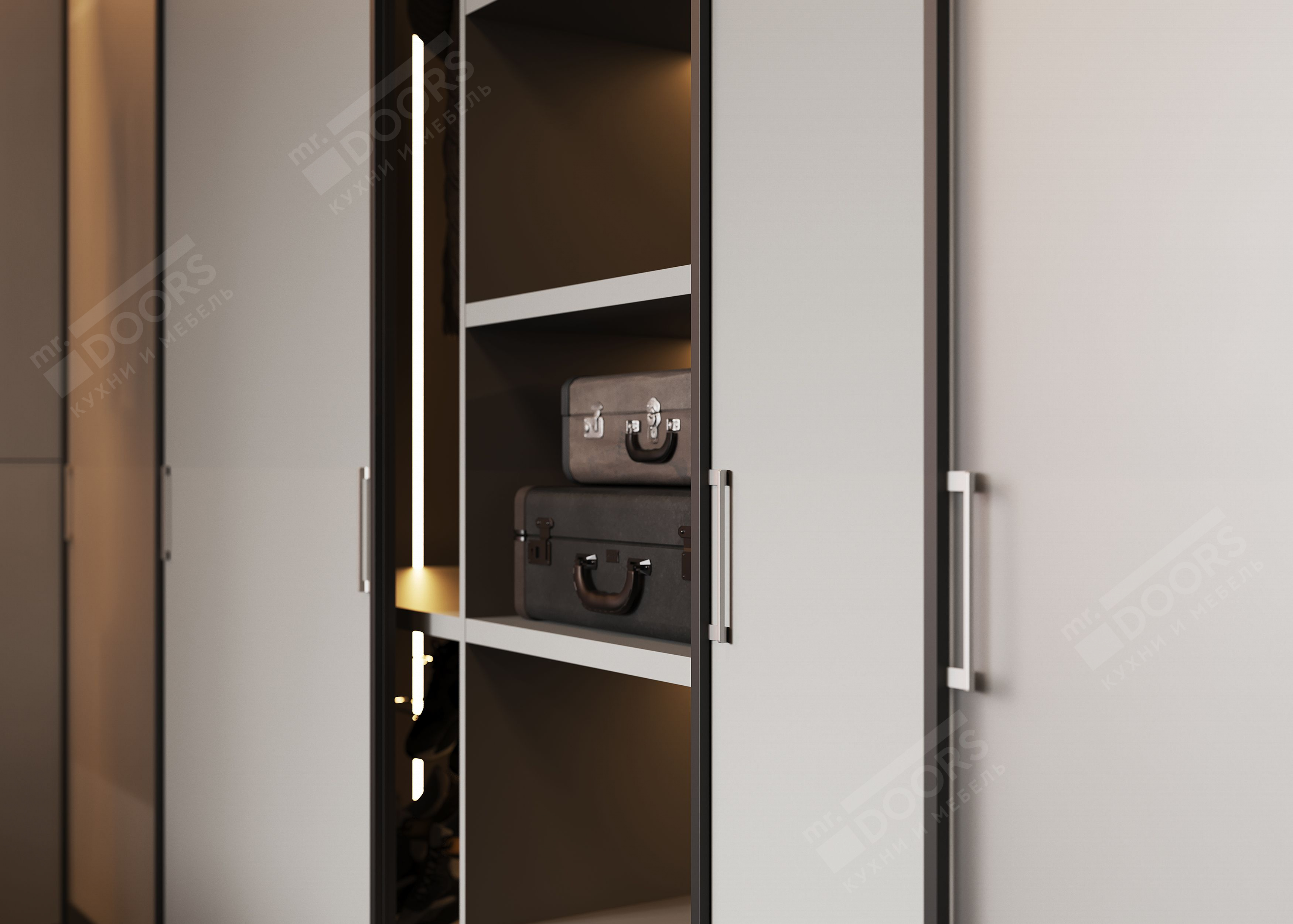 Купить эту и другие модели шкафов-купе от производителя вы можете воспользовавшись нашим интернет-магазином или посетив один из фирменных салонов Mr.Doors. Доставка товаров осуществляется в Москве и регионах России. Оставив заявку на сборку приобретенной мебели, вы можете быть уверены в качестве конечного результата, ведь у наших мастеров многолетний опыт работы с самым широким спектром мебели.