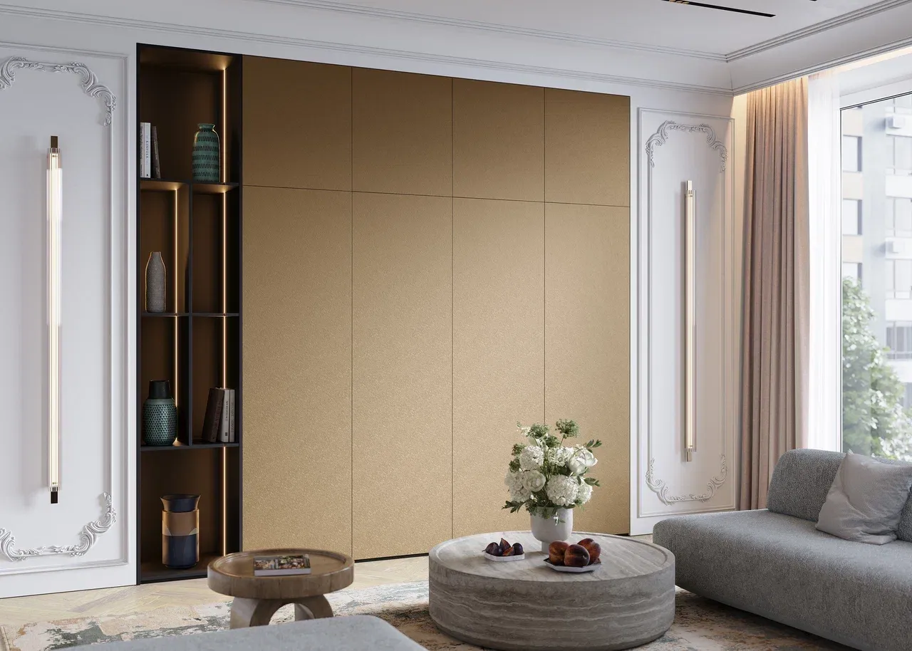 Материал фасада TSS в декоре YX Дали Золото. Изысканное сочетание прочной основы и роскошного золотого оттенка, который придает интерьеру эффектный акцент. Устойчивость к внешним воздействиям делают этот декор идеальным выбором для создания элегантного и современного образа