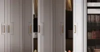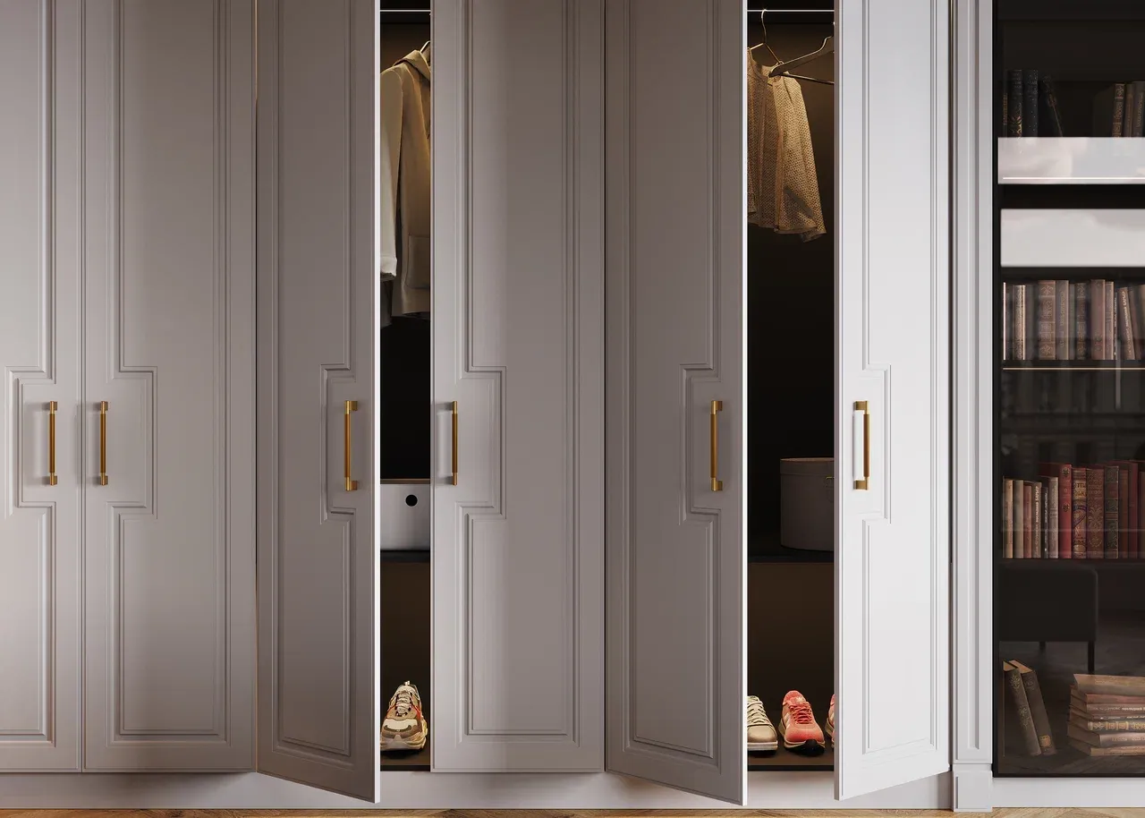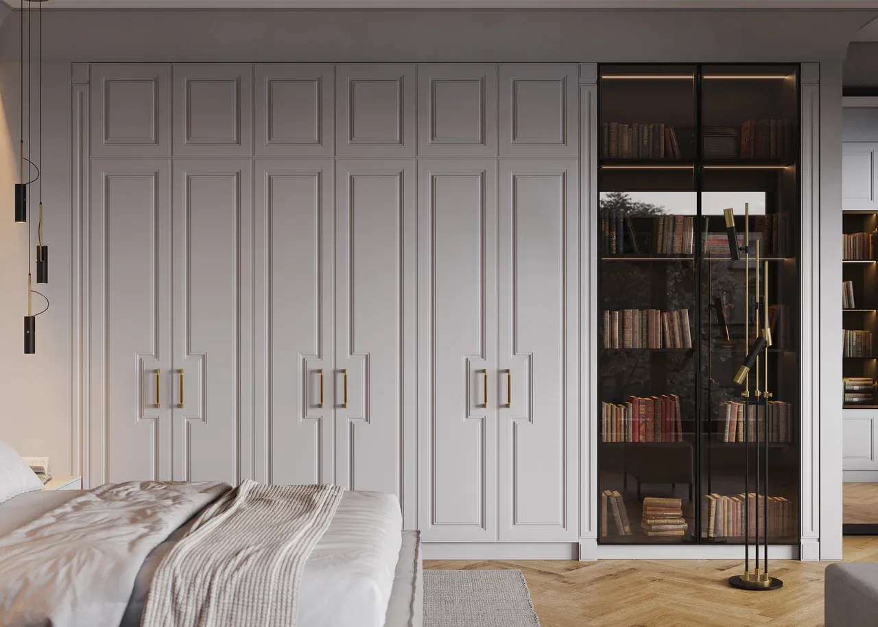 Декор корпуса GJ Гейнсборо в сочетании с фасадами из МДФ с фрезеровкой и матовой эмалью, дополненные ручкой Arpa GQ, создают стильный и современный образ шкафа, который станет элегантным акцентом в любом интерьере.