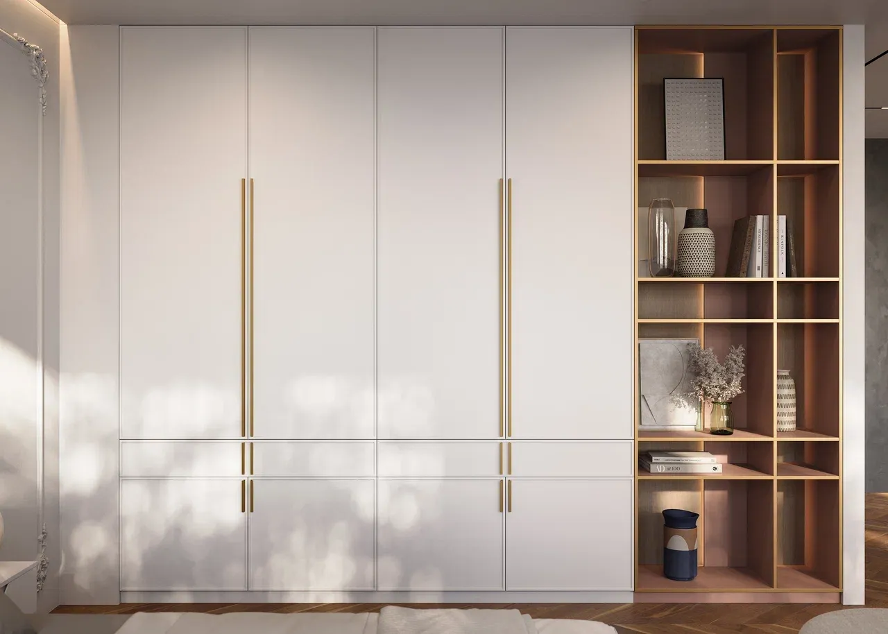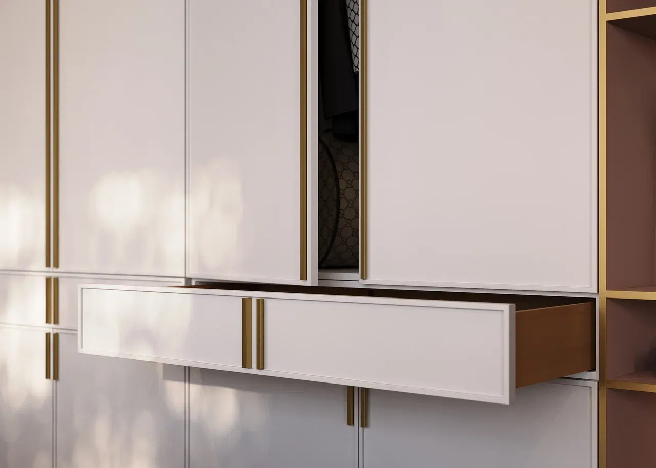 Внутреннее наполнение встроенного шкафа можно спроектировать под индивидуальные потребности, включая полки, ящики и вешалки. Шкаф плавно интегрируется в интерьер, а разнообразие материалов и отделок позволяет подобрать подходящий вариант для любого дизайна.