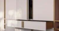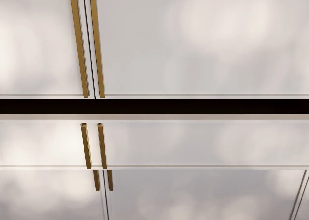 Декор корпуса PZ Попурри. Фасад трей белого цвета с ручками PREGO золотого цвета.