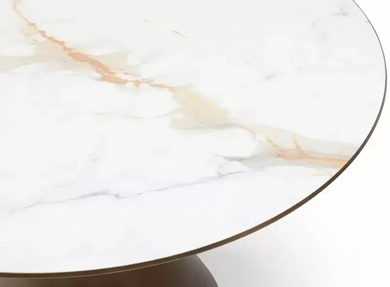 Стол Donna с керамической столешницей и лаконичным бронзовым подстольем с первого взгляда покоряет своим необычным дизайном.