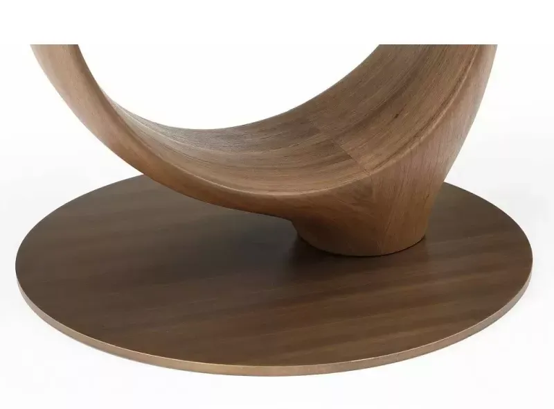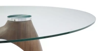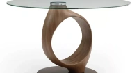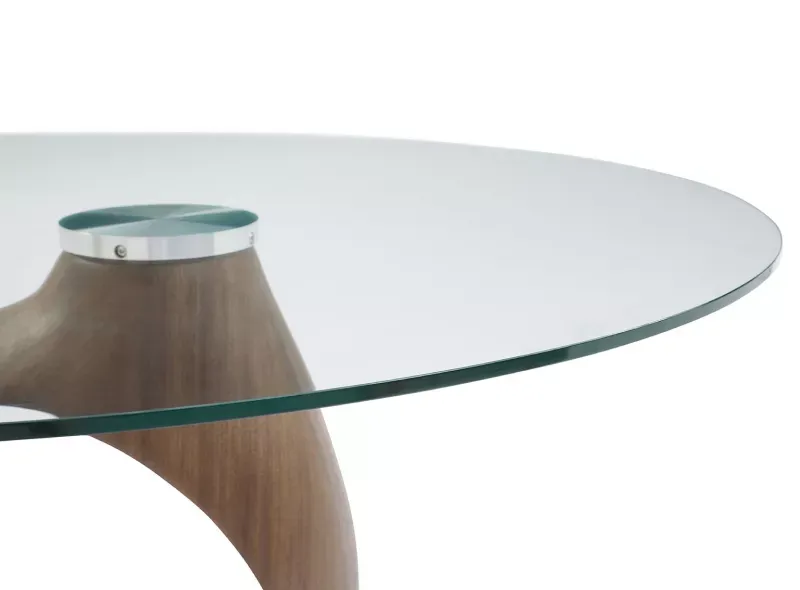 Круглый стол Oasis с оригинальным подстольем с первого взгляда буквально покоряет своим необычным дизайном. Столешница диаметром 130 см изготовлена из 10-миллиметрового закаленного стекла, ножка причудливой формы – из шпона ореха и стекловолокна, круглое основание – из металла в матовом бронзовом оттенке. Столешница из стекла легко очищается от загрязнений.