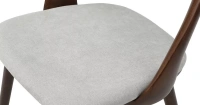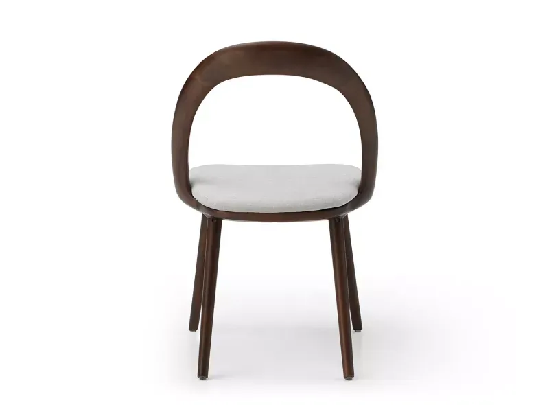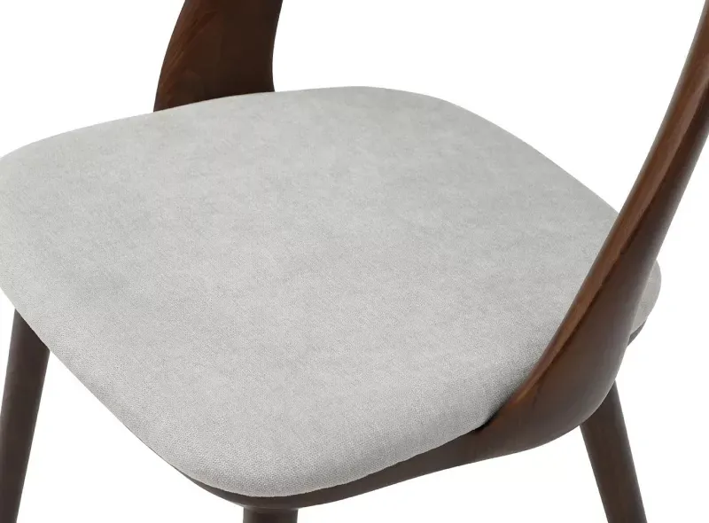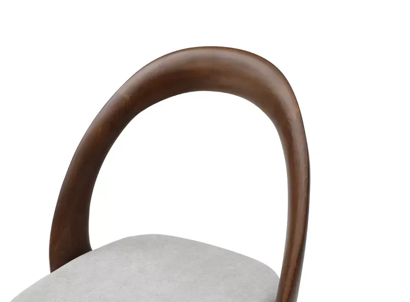 Стулья имеют изящную конструкцию из бука, тонированного в оттенок ореха и обивку из ткани серого оттенка. Выразительная форма спинки привлекает внимание, поэтому композиция со стульями April претендует на акцентную роль в интерьере.