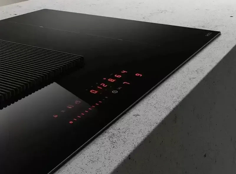 Варочная панель работает на индукционном нагреве — это значит, что повышается температура непосредственно посуды, в которой готовится блюдо. Таким образом промежуточная ступень с предварительным нагревом конфорки пропускается — сокращается время, повышается безопасность.