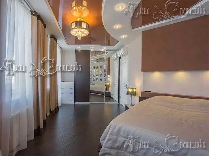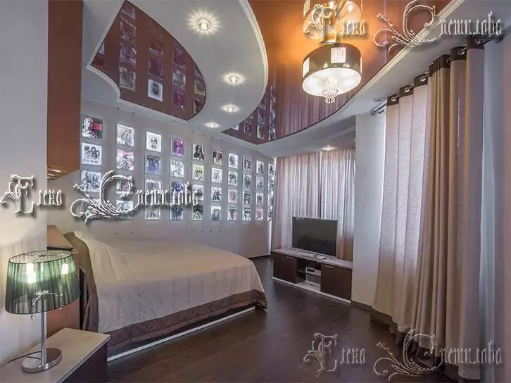 Нетривиальность интерьеру придаёт самая интересная комната квартиры-это спальня - кабинет хозяина, многолетнего поклонника легендарных рок-групп. Главным акцентом в ней стала так называемая «Стена Славы Рока». Заказчик хотел, чтобы на одной плоскости стены разместились музыканты и группы, которые навсегда вошли в историю рок- музыки, чтобы все выглядело ярко, позитивно. Сорок, светящихся ровным светом квадратов, напоминающих коробки компакт дисков притягивают внимание.