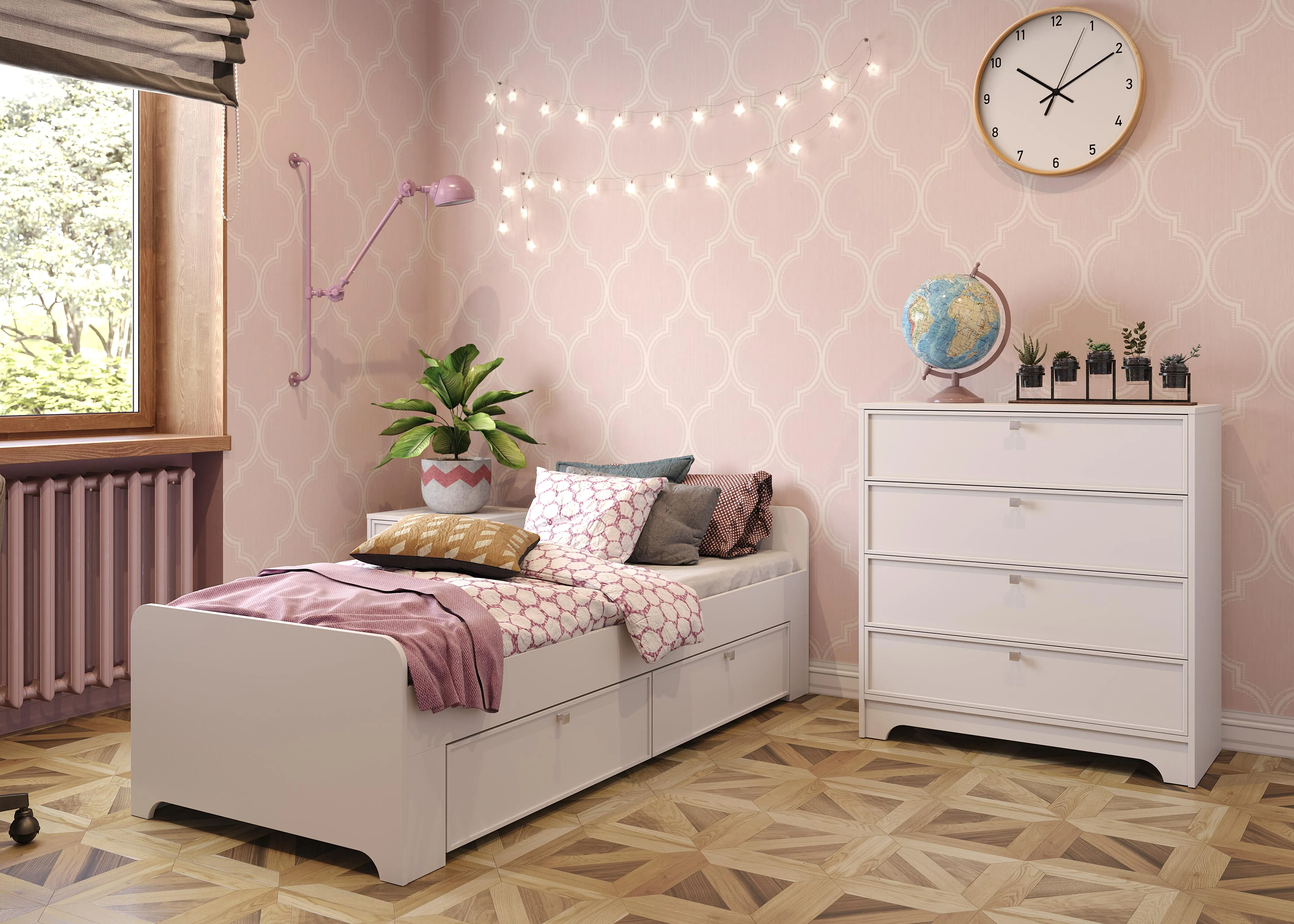Выход есть. Дизайн комнаты всегда можно обновить с помощью обоев, текстиля, аксессуаров, перестановки. А в случае с KidSpace, вы также можете заменить декоры (выбрать новые принты или расцветки для мебели).