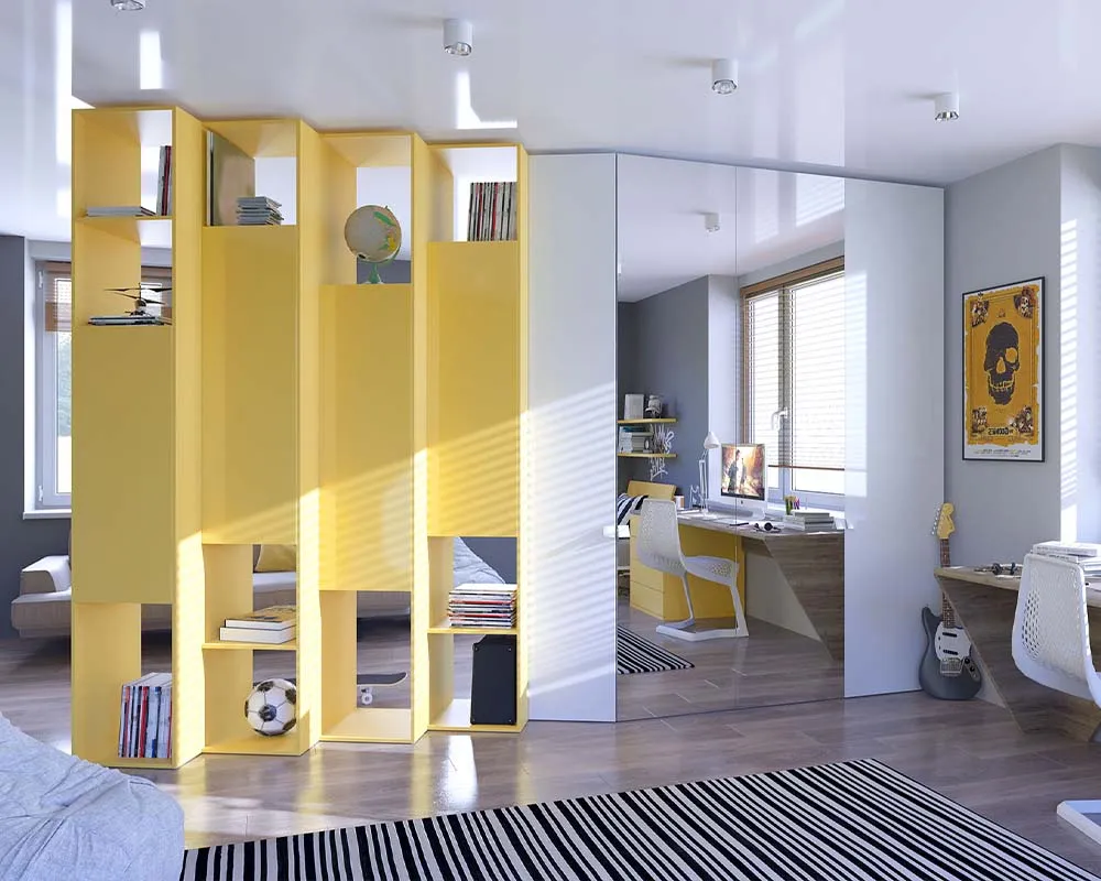 Благодаря зеркалам маленькая комната становится больше и светлее.