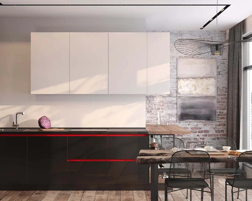 Новинка пришла в Россию из Италии и стремительно завоевала большую популярность среди потребителей. Отсутствие лишних деталей на фасадах подчеркивает внешний шик и элегантность мебели.