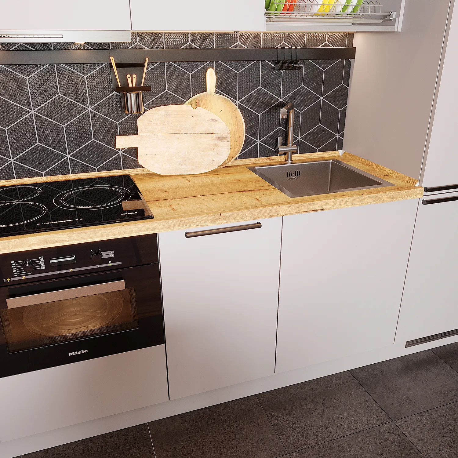 Вторые по популярности. Удобны для установки и эксплуатации с небольшими столешницами. При этом достаточно вместительны. Как правило, не имеют дополнительных элементов.
