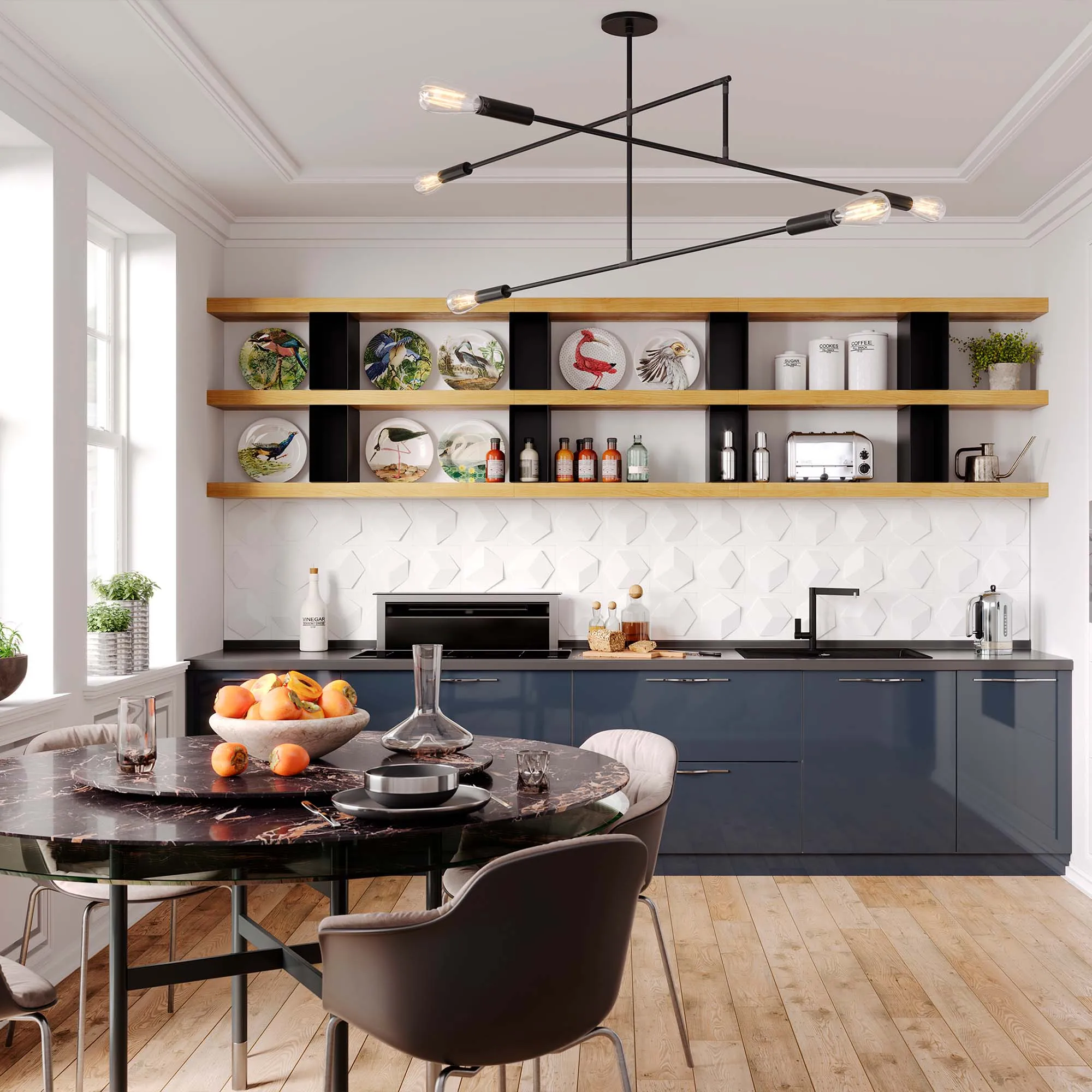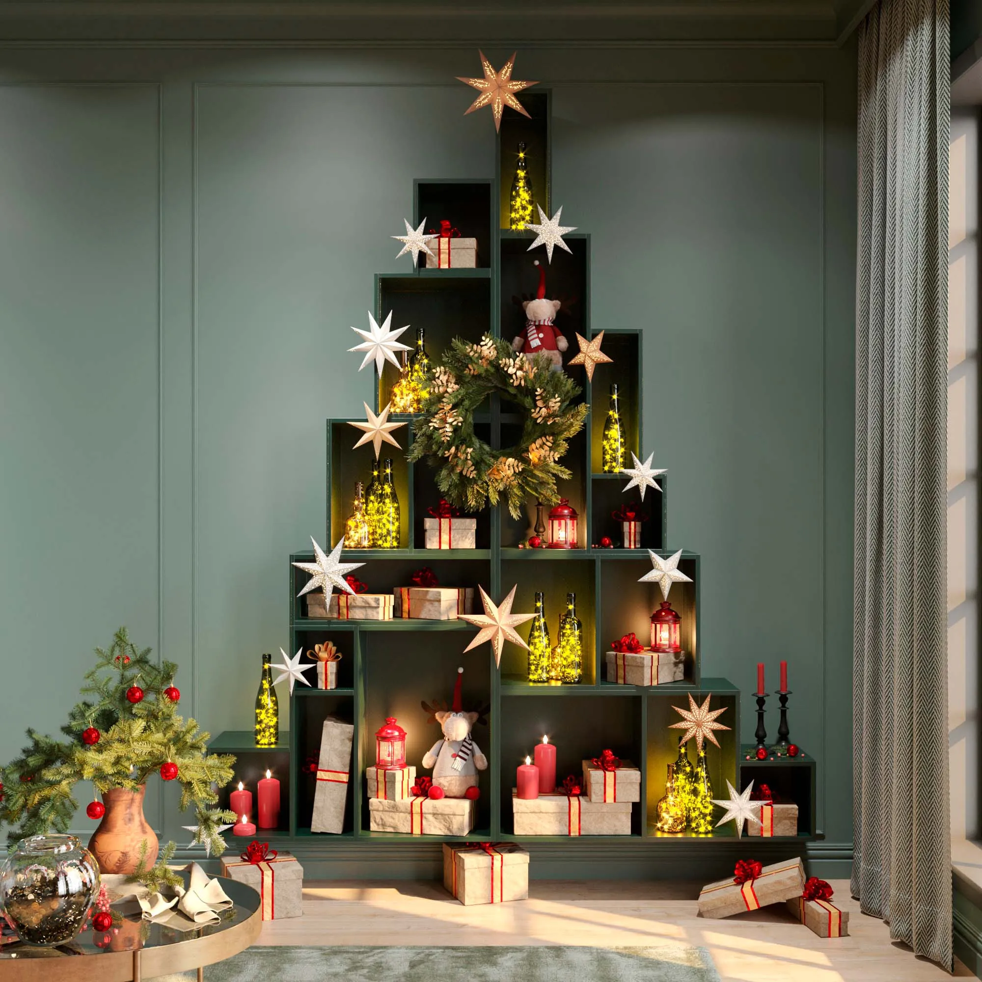 - Любой праздник, даже «не наш» – отличный повод добавить тематического декора. Хэллоуин – тыквы, сухоцветы. 9 марта – цветочные композиции, шары, свечи. Ну и конечно Новый год – венки, гирлянды, еловые ветви, звезды и снежинки из бумаги, поделки из шишек и так далее.