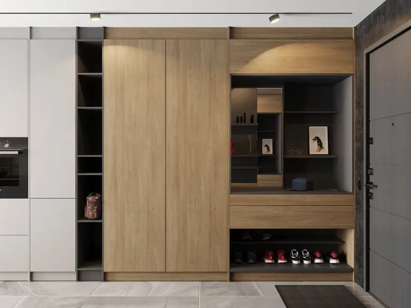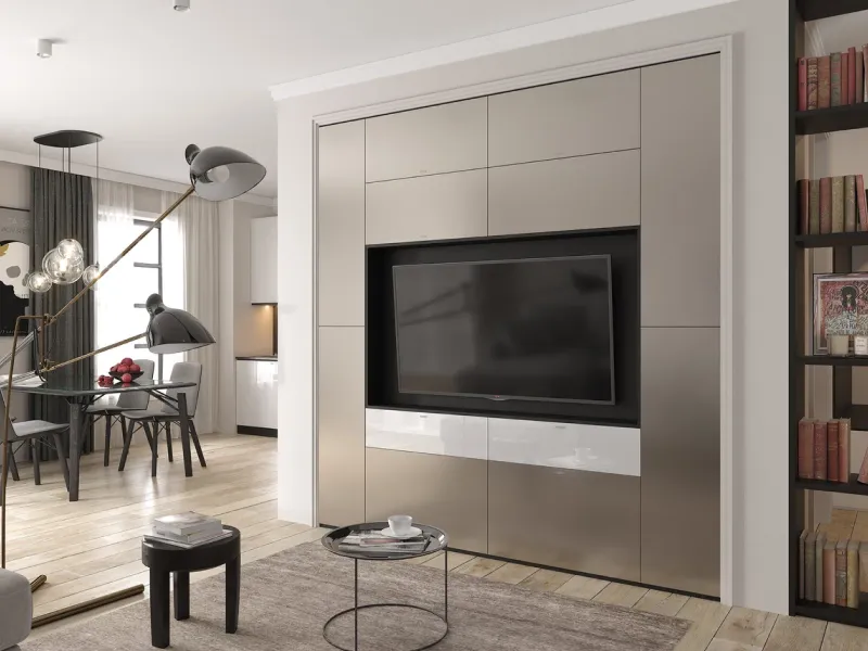 3. Свободное пространство, которое так ценят любители этого стиля, появляется благодаря продуманным системам хранения. Гардеробные, встроенные шкафы, мебель с нишами для проводки коммуникаций — каждый элемент не только решает свою задачу, но и создает нейтральный фон, который не перетягивает на себя внимание. Чтобы добиться такого эффекта, лучше заказывать индивидуальный проект.