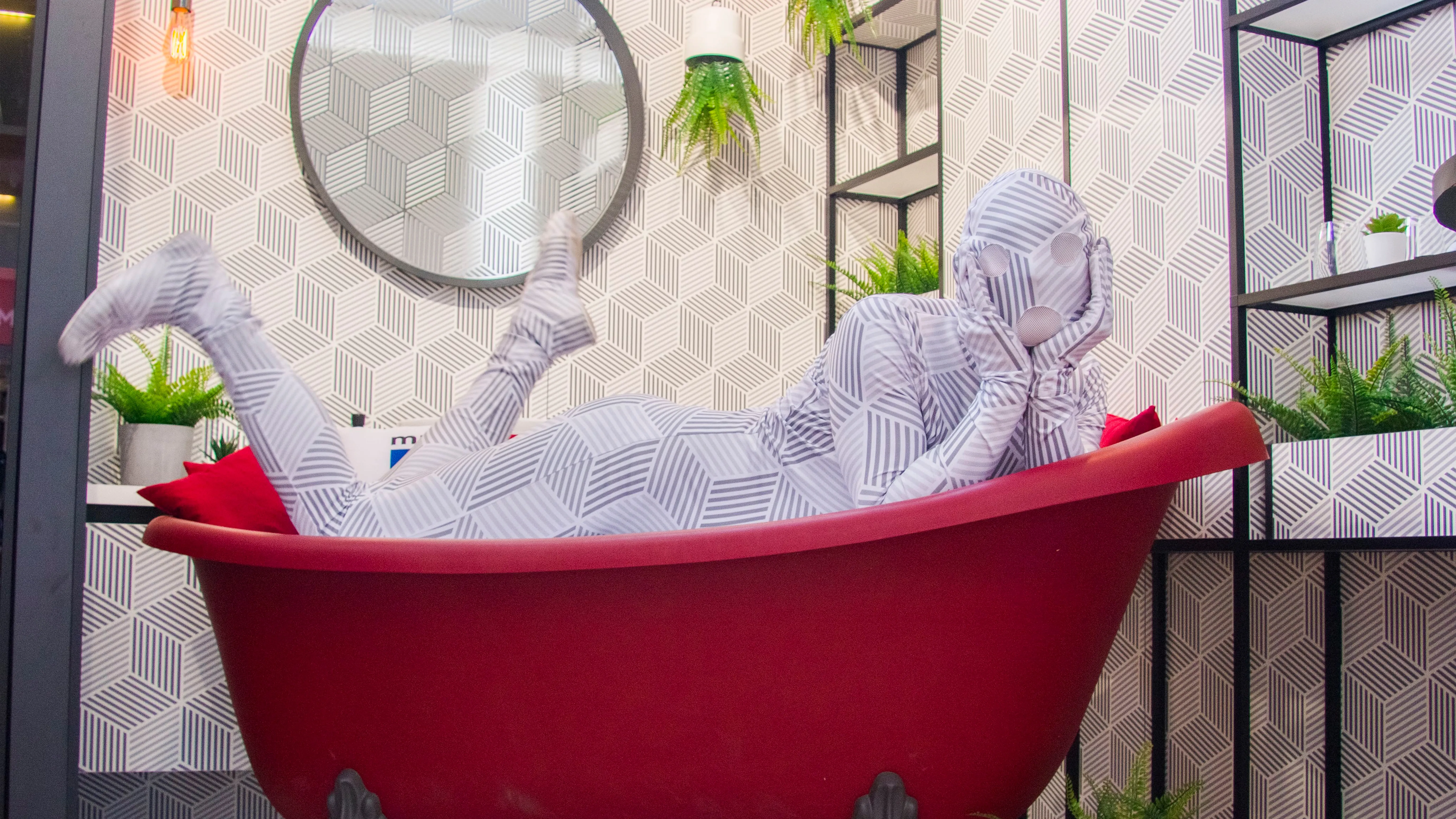 Огромный интересу участников выставки вызвал наш супер-герой Человек-принт. Практически все гости мероприятия хотели забраться в нашу ванну и сделать фото с ним.
