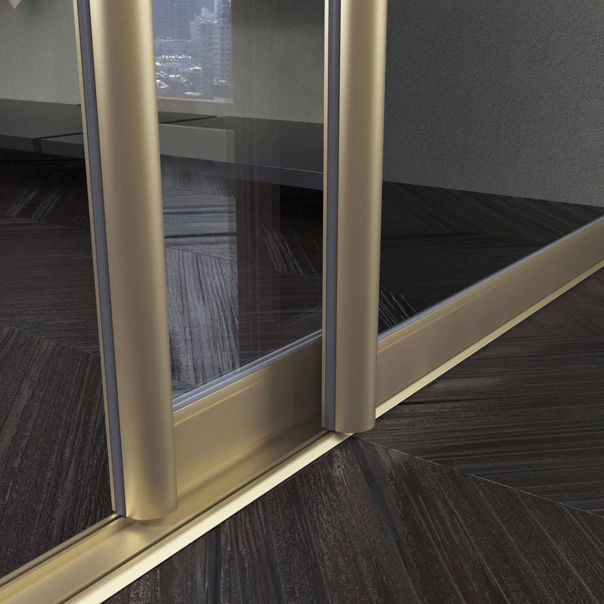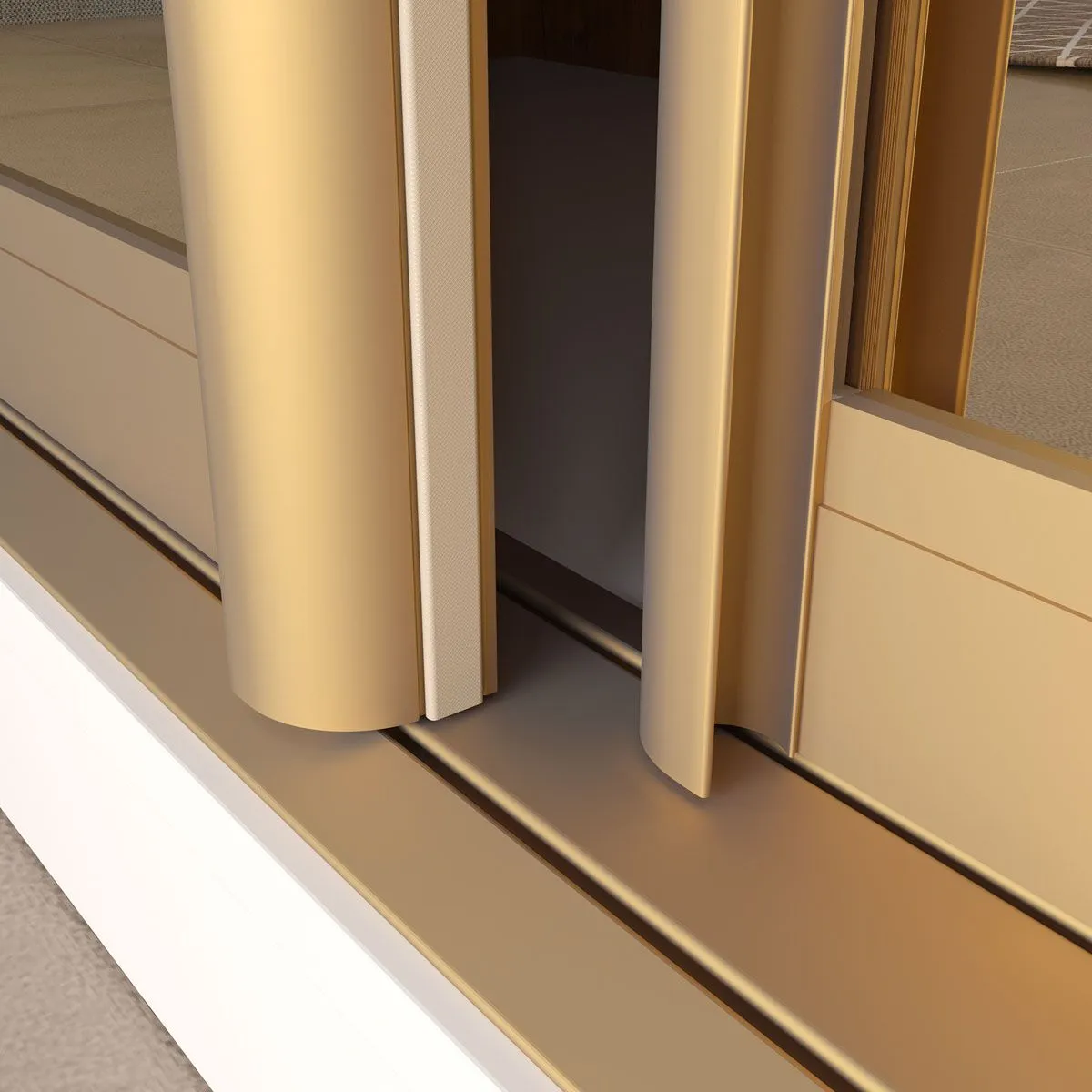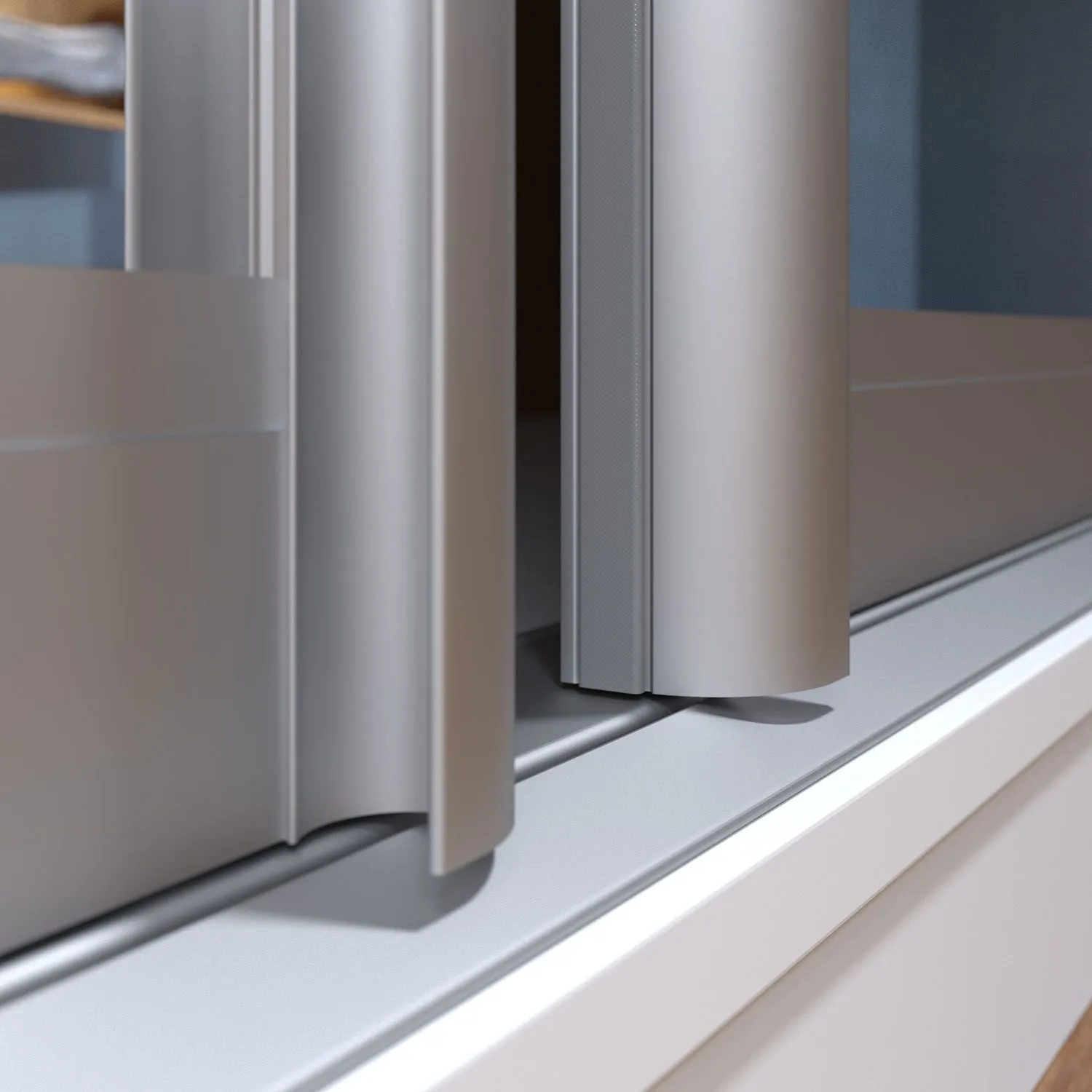 Двери перемещаются по направляющим профилям с помощью роликовых механизмов. Основная нагрузка всей рамочной конструкции полотна осуществляется на нижние ролики. Рама поставляется в трёх цветах анодированного покрытия: «Матовое серебро», «Золото» и «Бронза».