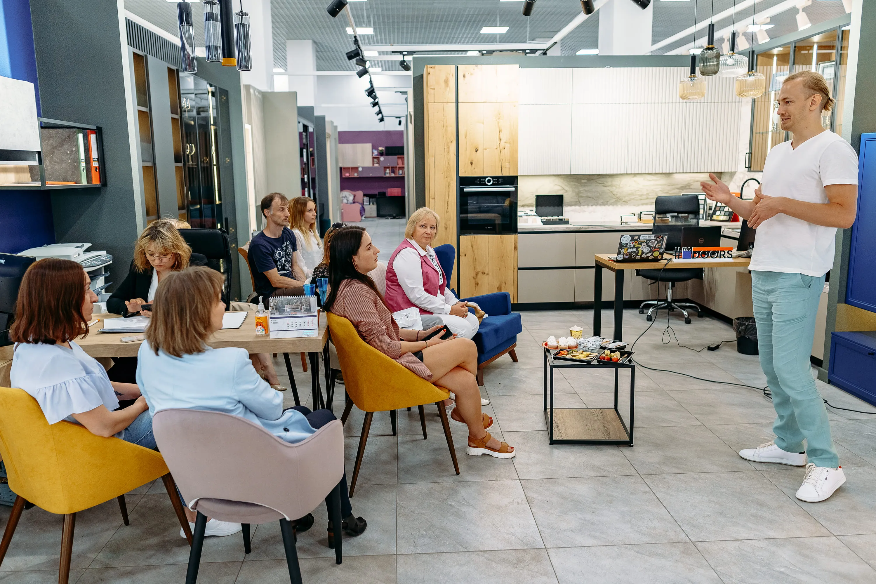 В июне в Санкт-Петербурге прошла закрытая встреча для дизайнеров интерьеров, партнеров Mr.Doors. Мероприятие было приурочено к обновлению экспозиции в нашем Ателье в ТЦ "Богатырь".