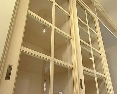 Традиционно для изготовления мебели в классическом стиле принято использовать рамы из массива дерева. К сожалению, рамочные фасады больших форматов (для дверей шкафов-купе) со временем рассыхаются и деформируются. Поэтому специалисты компании Mr.Doors создали оригинальную технологию: рама изготавливается из алюминиевого профиля, который придает фасаду стабильность, а затем облицовывается шпоном. В частности, для декора «Декапе жемчуг» используется шпон африканского дерева кото.