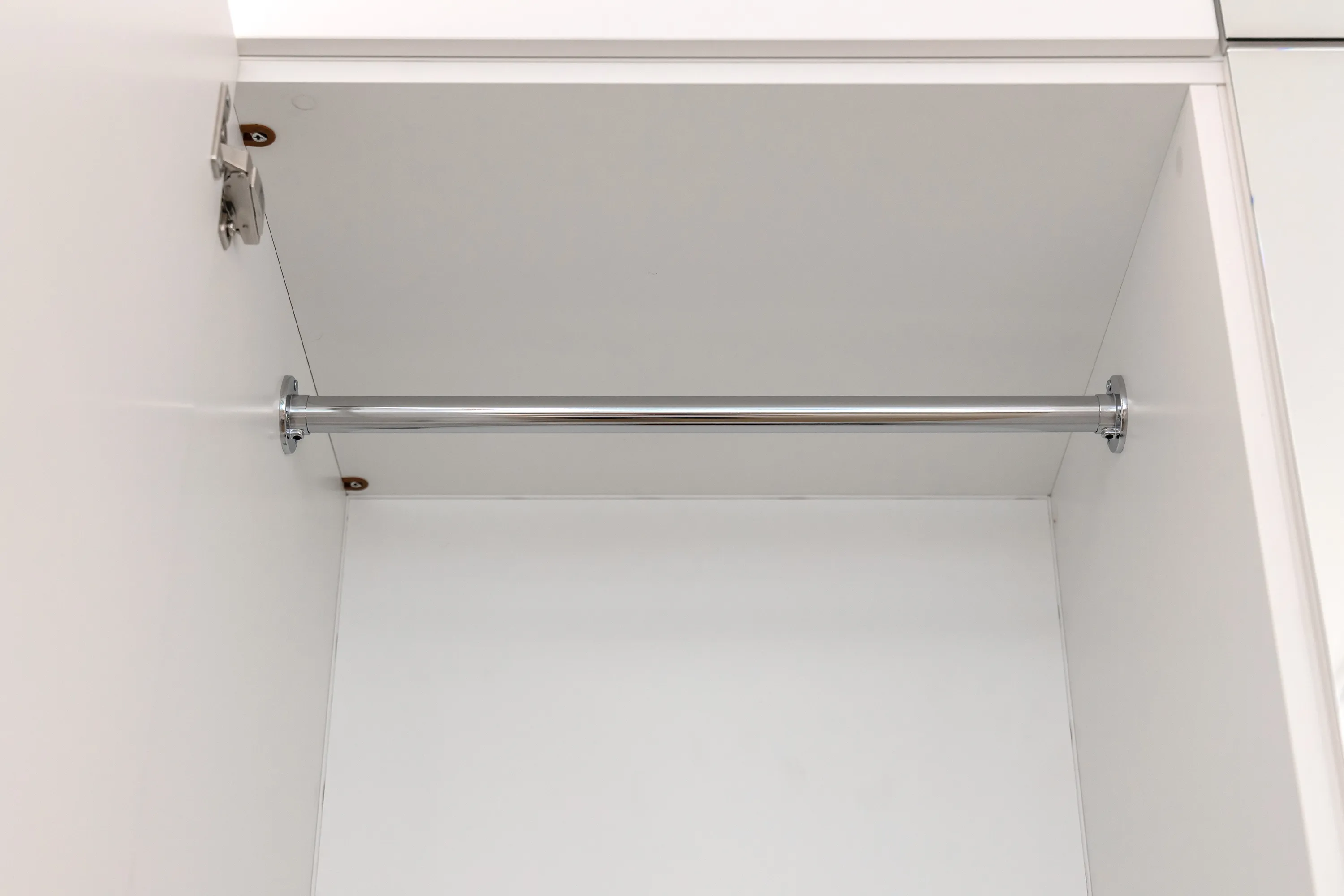 Рядом с входом устроили еще один шкаф для одежды с распашными дверцами. На один из фасадов методом ультрафиолетовой печати и нанесено изображение Русалочки в подводном мире. Наполнением вещевого шкафа и мини-гардеробной рядом с кроватями послужили вешала «Про-люкс» в декоре Хром и полки. Один из фасадов – Skin – зеркальный. В комнате для девочек без зеркала ну никак не обойтись.