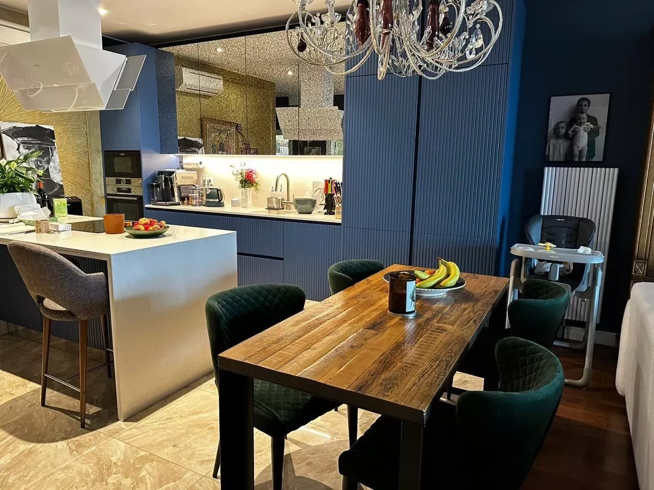 Варочная поверхность размещена на острове, что делает процесс приготовления пищи максимального удобным. Зеркальные фасады выглядят особенно стильно и визуально расширяют помещение. Просторная обеденная зона станет отличным местом для семейных посиделок и встреч с близкими.