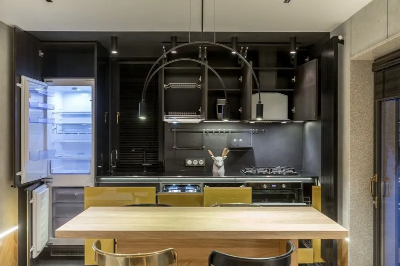В итоге получился современный, многогранный по исполнению, но визуально легкий интерьер – пространство, вбирающее в себя ритм города и загородное спокойствие.