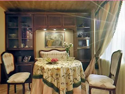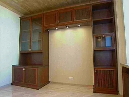На этот раз мебель Mr.Doors стала подарком ко Дню Победы для ветеранов. Квартирный вопрос преобразил гостиную в квартире пожилой четы. Комнату полностью переделали и наполнили новой мебелью. Всю торцевую стену заняла мебель серии Mr.Doors Classics - композиция из двух модулей, соединенных между собой антресолями в виде арки. Все элементы, кроме фасадов - экологическая панель "Орех Антик". Фасады выполнены из рельефных панелей "буазери". В таком же стиле выполнен экран, маскирующий батарею и небольшая тумба с распашными створками. Серия Mr.Doors Classics отличается от других серий мебели Mr.Doors наличием в ассортименте комплектующих из натуральной древесины и шпона.
