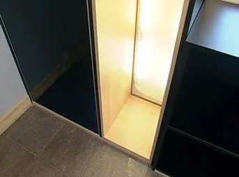 Одно закрыто аналогичным верхнему фасадом в раме «Футур» с одноименной профиль-ручкой, вставкой в который служит декоративное стекло черного цвета «Нуар». Внутри - полки и задняя стенка из ламинированной плиты черного цвета.