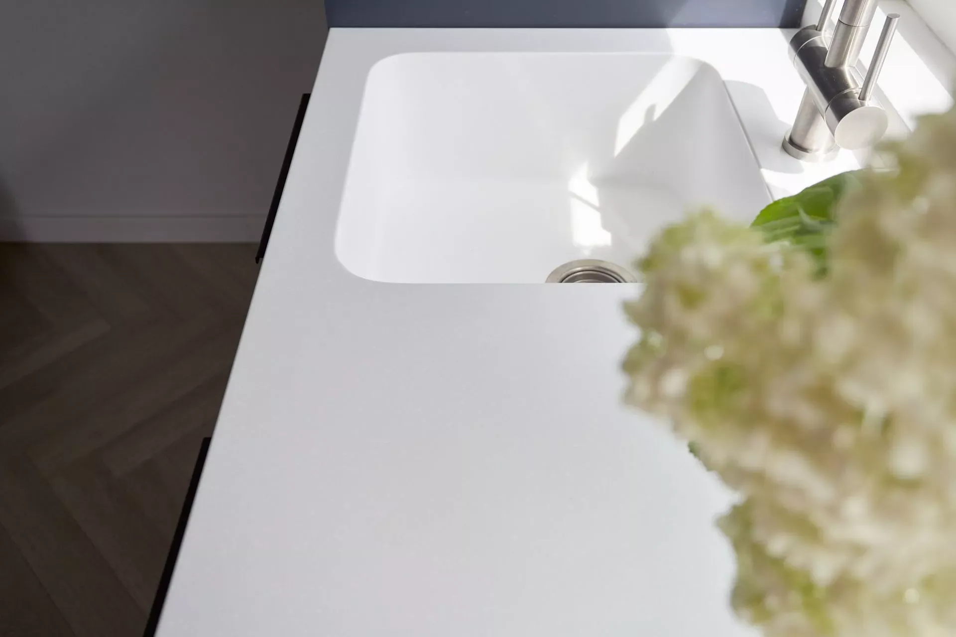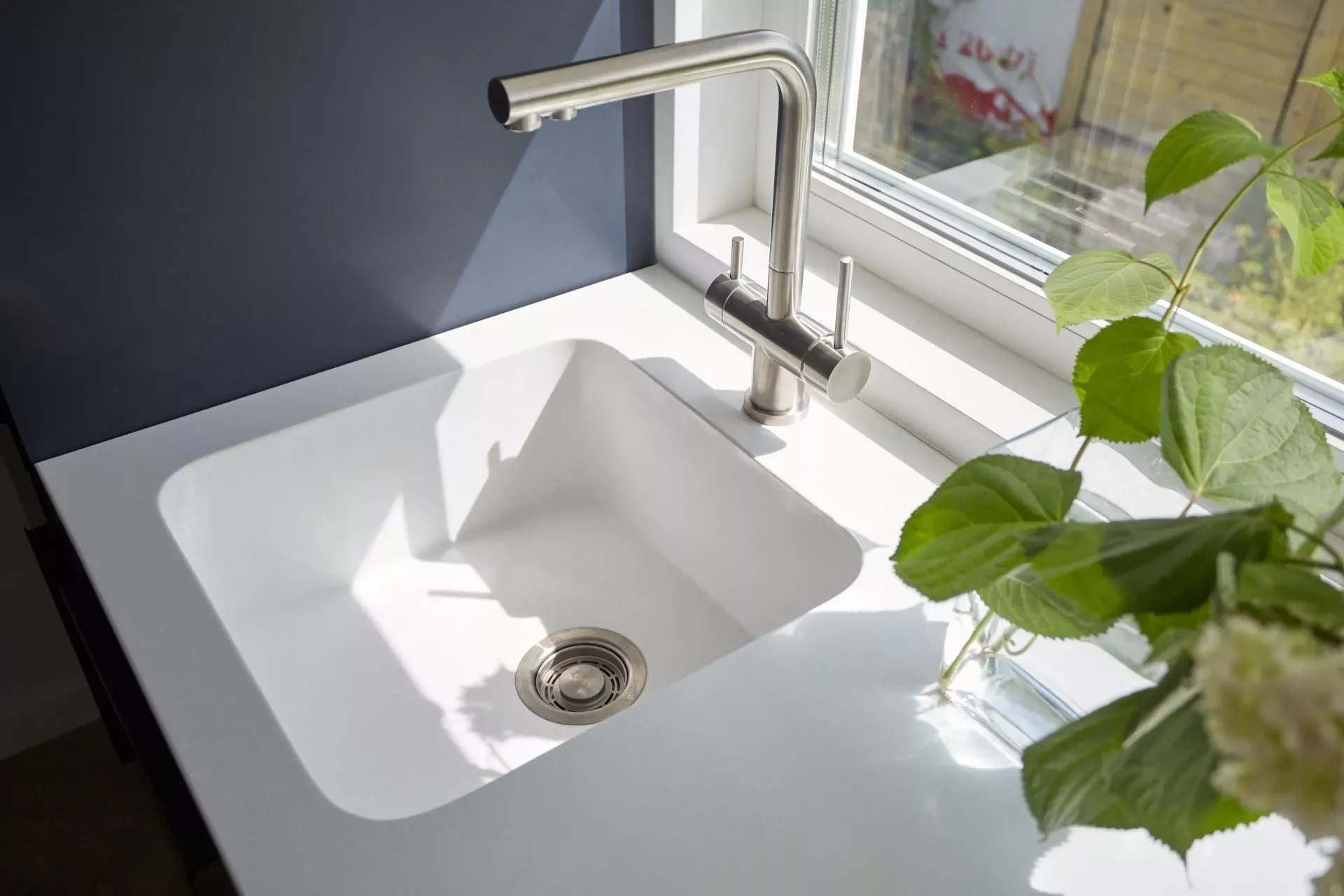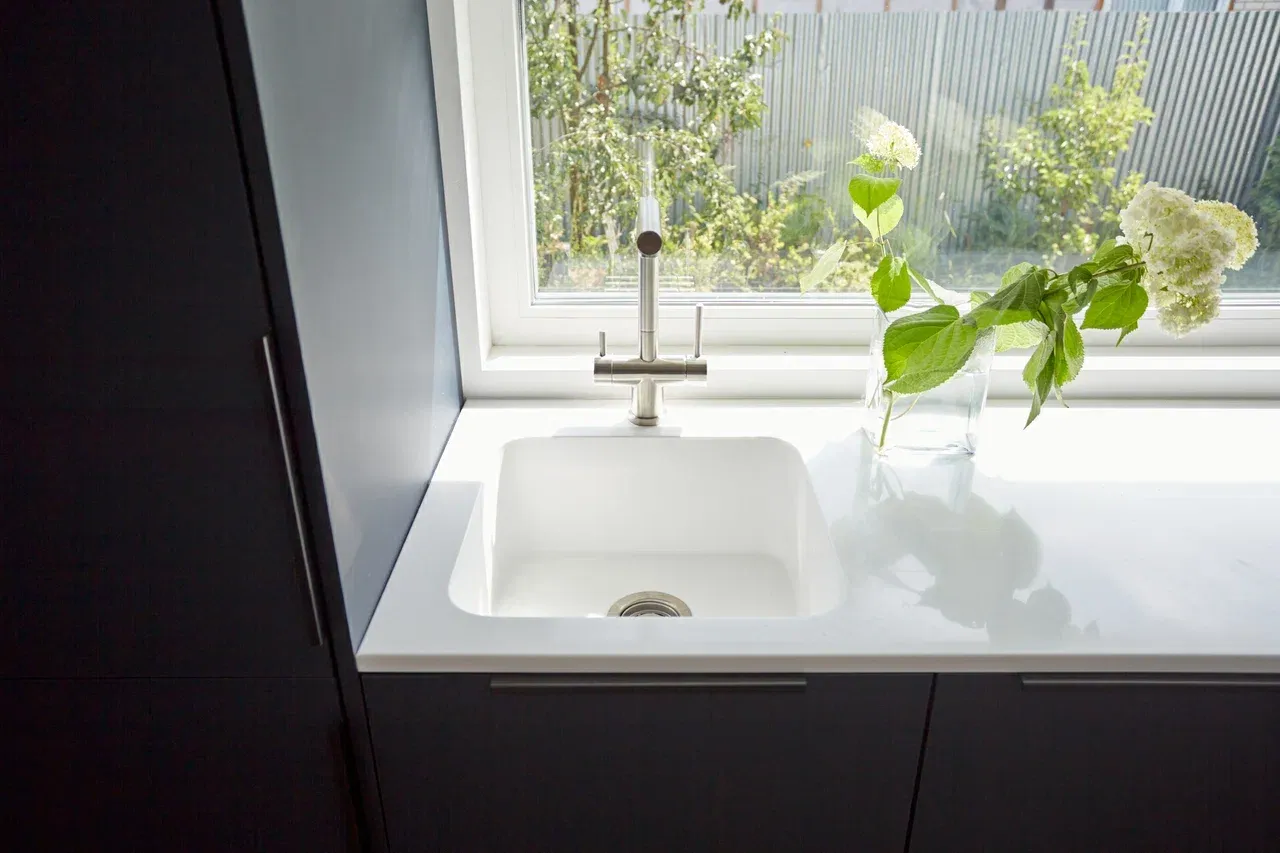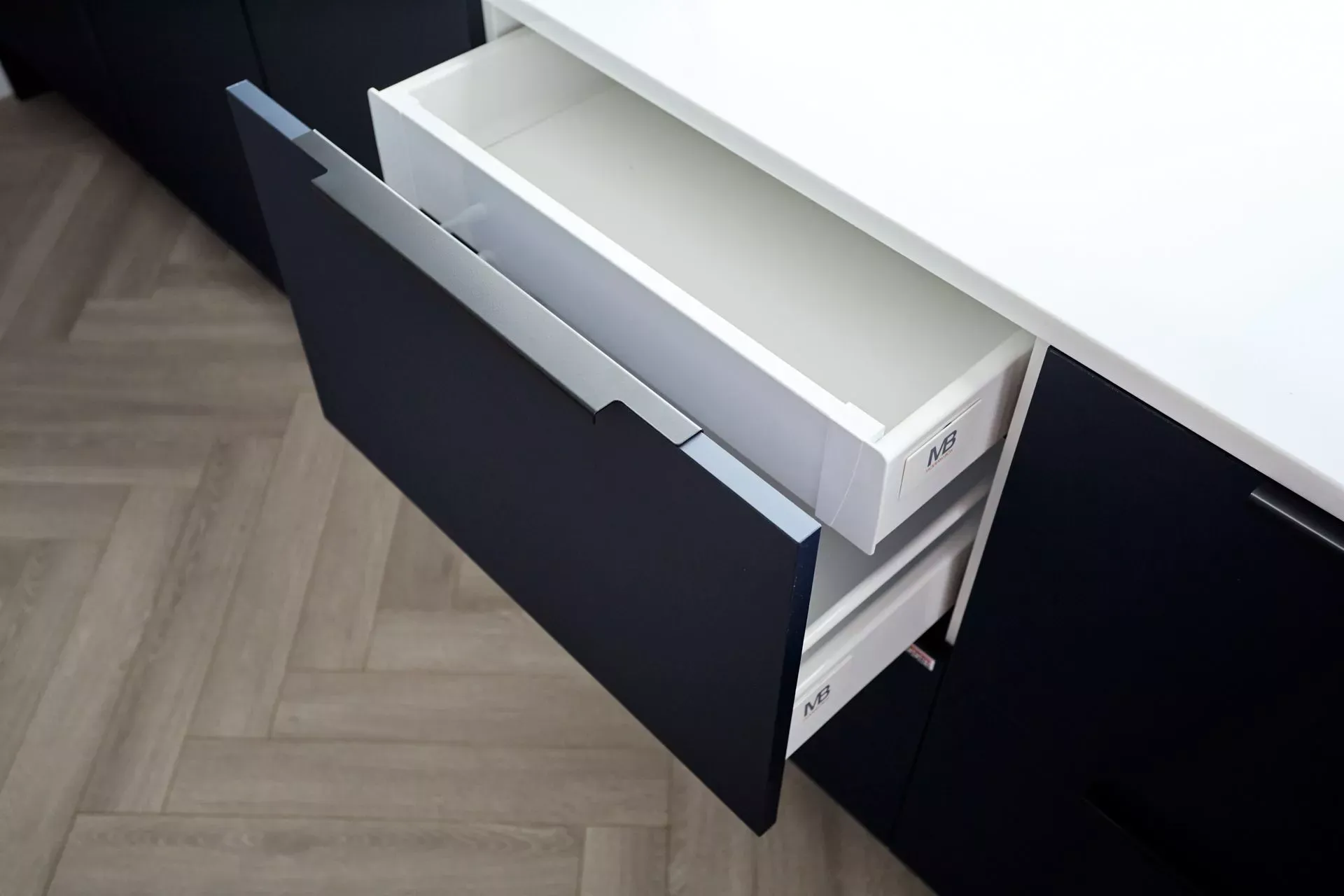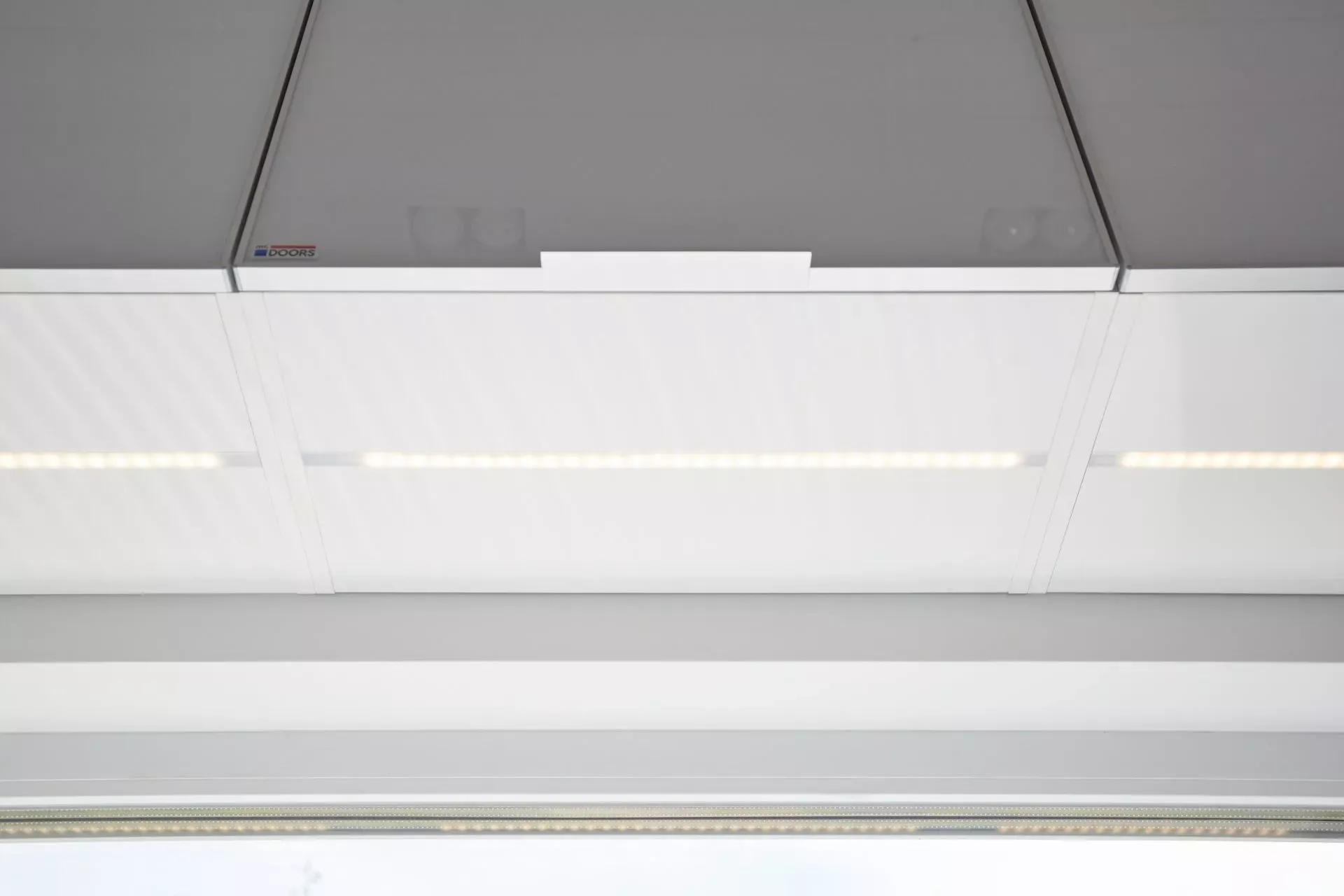 Во всю длину стены смонтировали стеллаж по проекту архитектора. Учли высоты окна, расположение и размеры радиатора отопления, скрытого за стеллажом под окном. Специальная конструкция стеллажа позволила не только грамотно обойти радиатор, но и оставить его работоспособным (снизу решётки для входа холодного воздуха, на столешнице такие же под окном - для выхода тёплого воздуха). Стеллаж полностью, включая цоколь, выполнен из 16-мм ДСП EGGER в декоре Дуб Винченца. Скандинавский стиль гостиной сохранён.