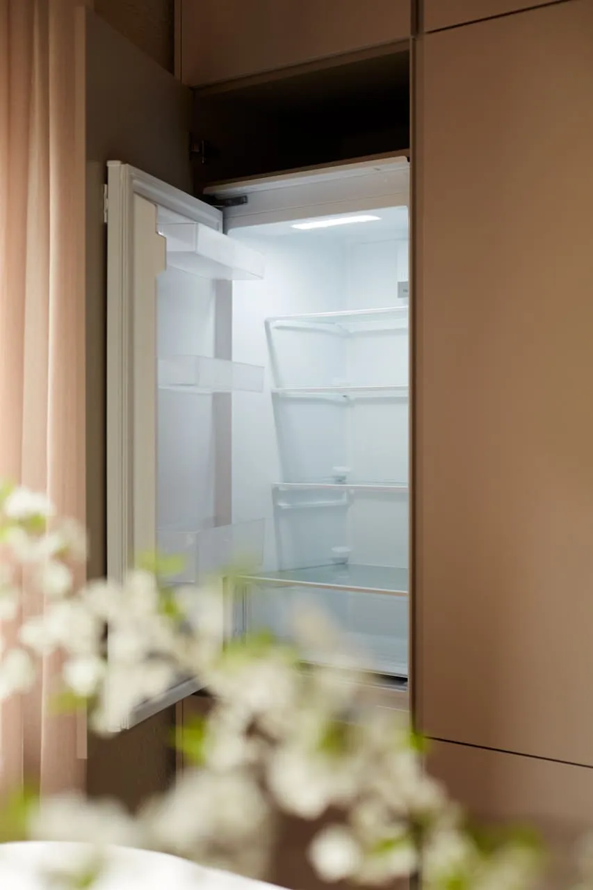 а также в высокой левой секции между вертикальными рядами, позволяя открывать дверцы холодильников и шкафов беспроблемно, не оставляя пятен на поверхности фасадов.