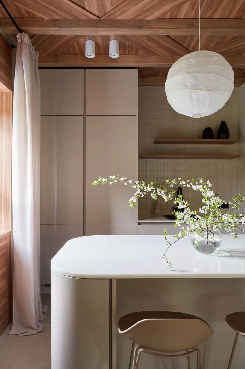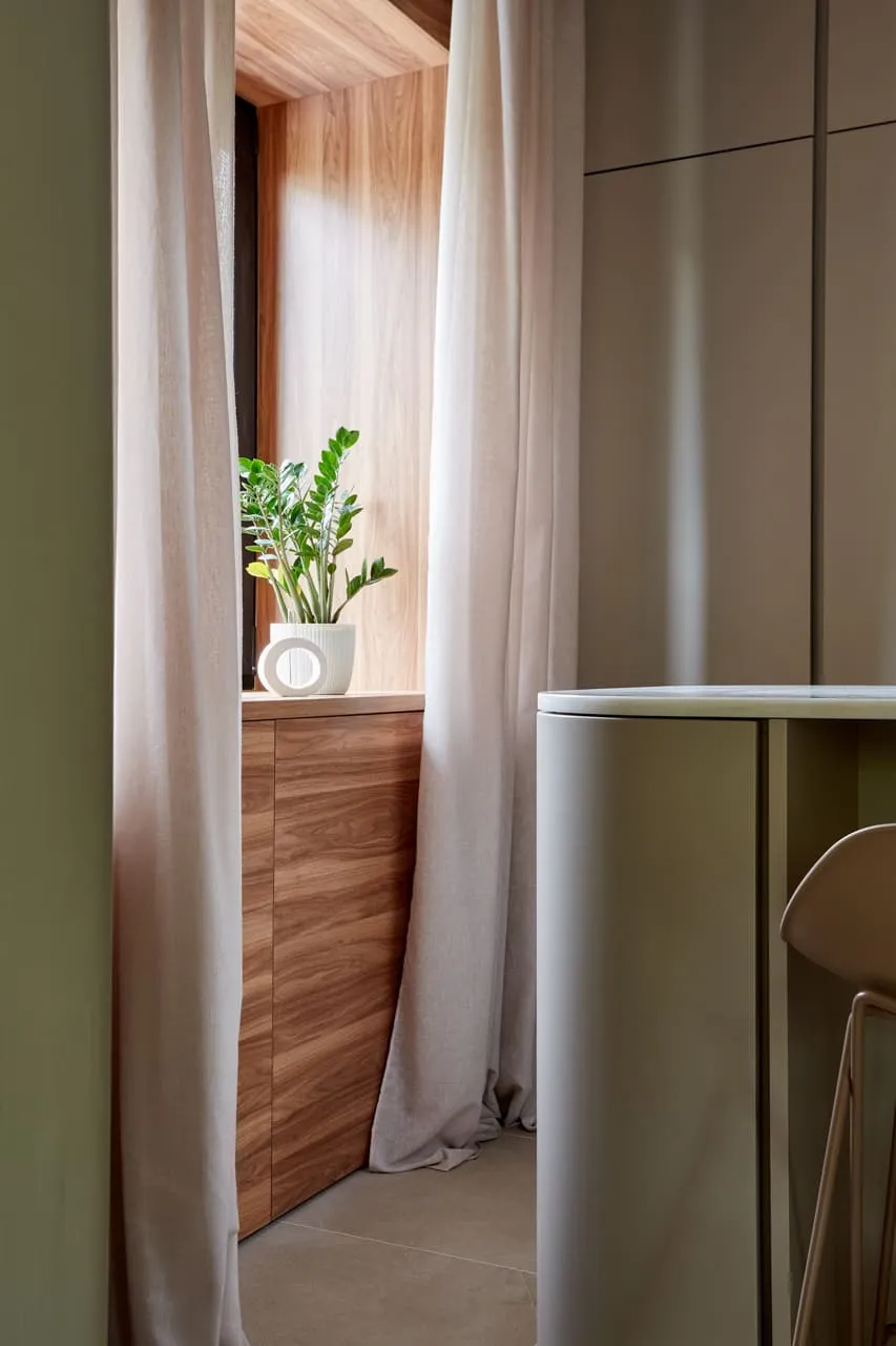 - Первая реакция – оцепенение. Нас просили не молчать, когда мы зайдём в зону переделки, но при входе и, кажется, первые несколько минут слов было не найти. Сказать, что нам понравилось – это ничего не сказать. Мы в невероятном восторге!!! Нравится в целом стилистическое решение, благодарны, что к нам прислушались и сохранили много воздуха в зоне кухни-гостиной, и полезное пространство для хранения заключили в закрытые шкафы. Остров! Он покорил с первых секунд! – это на самом деле было мечтой! Но его сделали не просто местом, где можно перекусить, но и позаботились о функциональности. С одной стороны находится обеденная зона, с другой – места для хранения, – думаем, что это очень удобно!