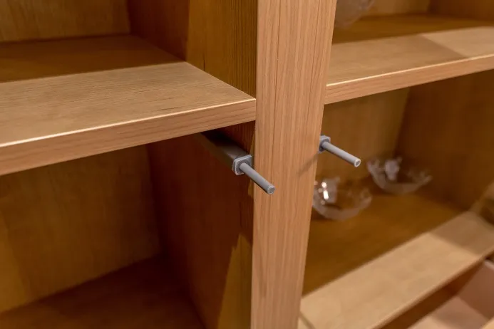 У верхних модулей нижняя полка углублена относительно боковых для удобства открывания фасадов.