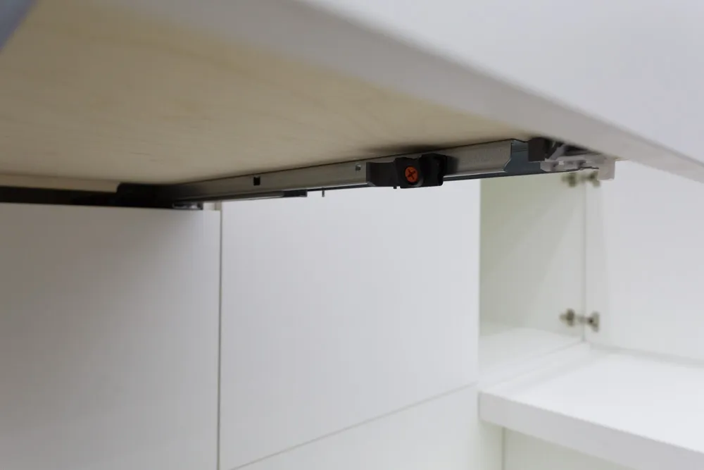 Направляющие полного выдвижения скрыты под корпусом ящиков.