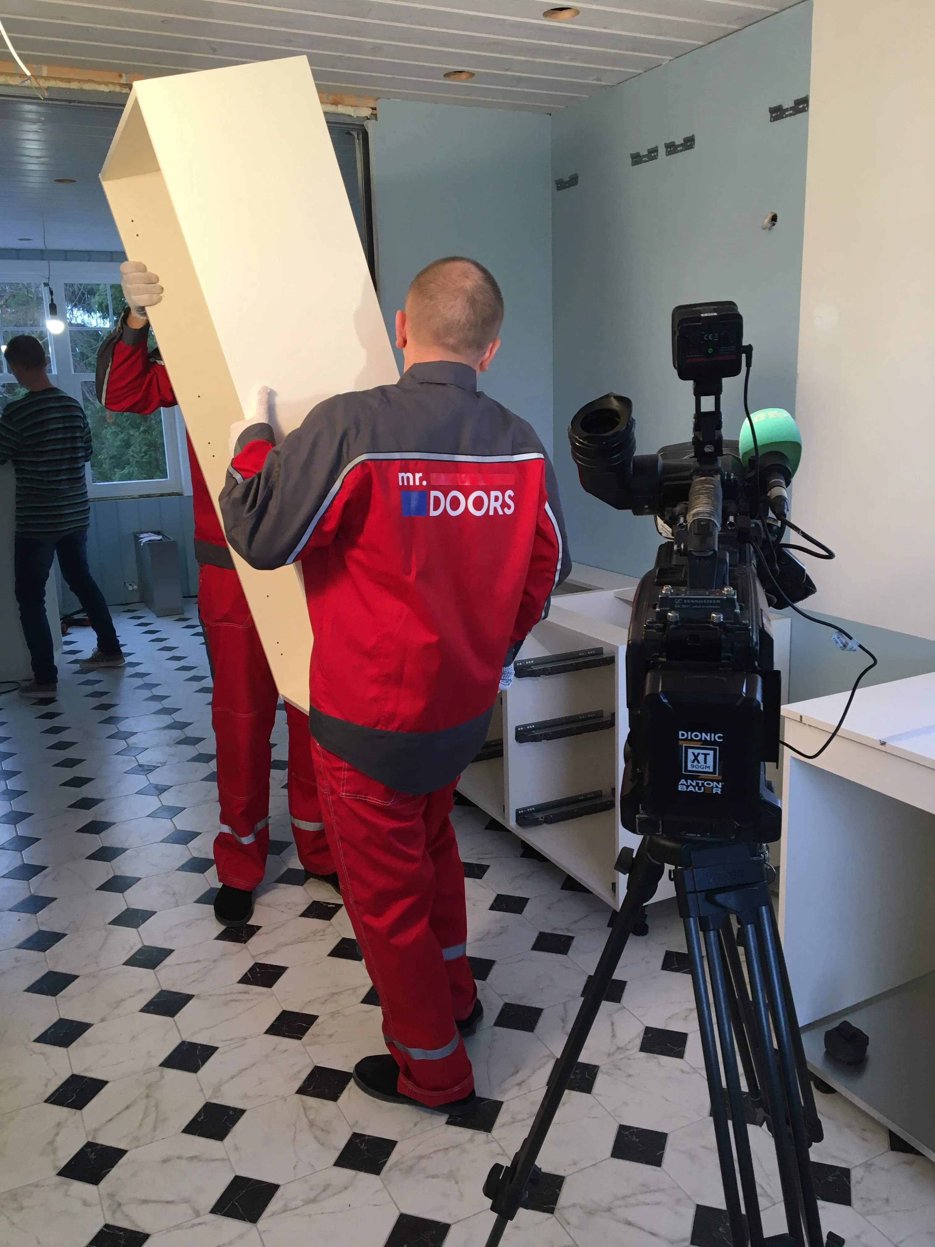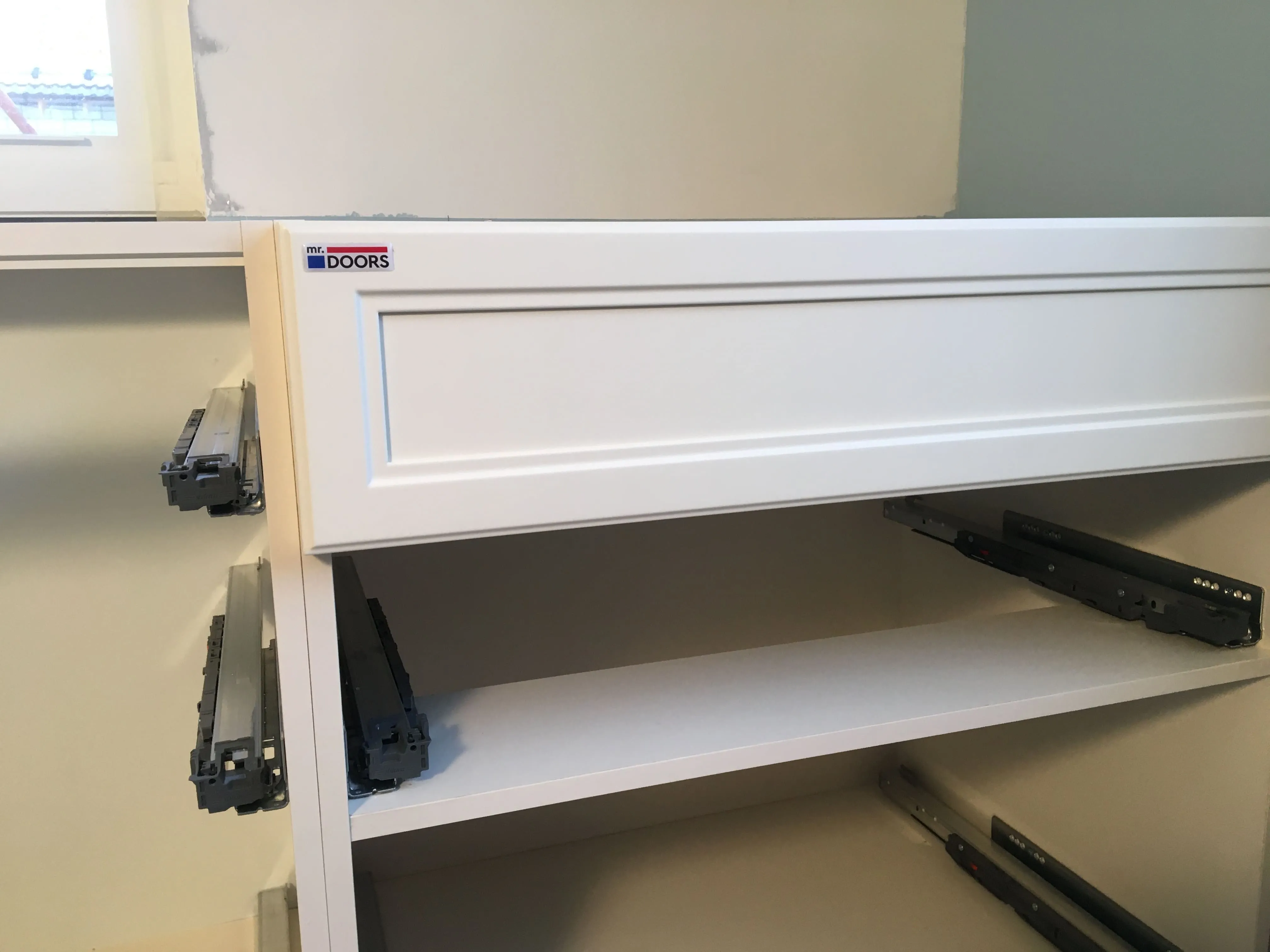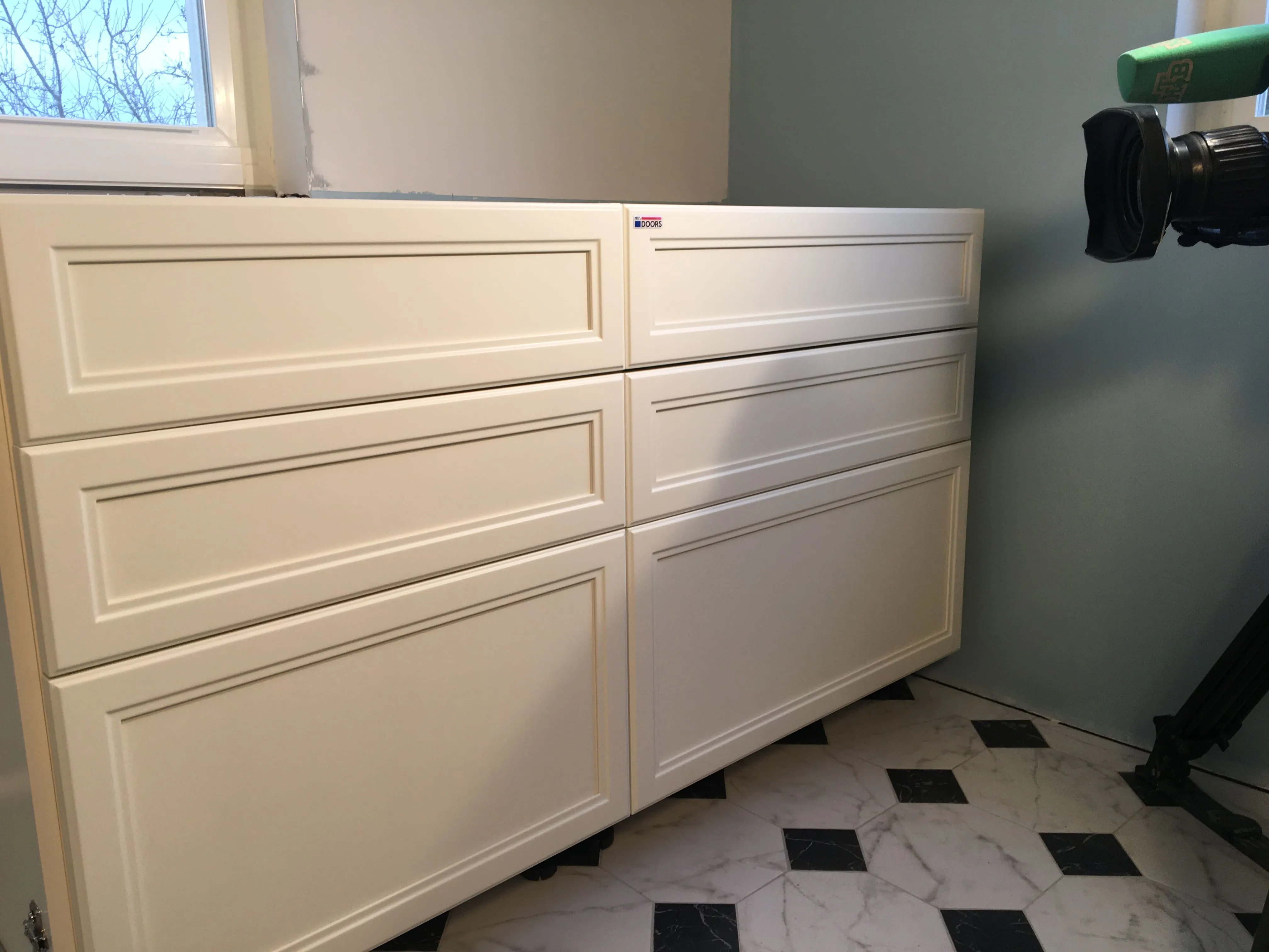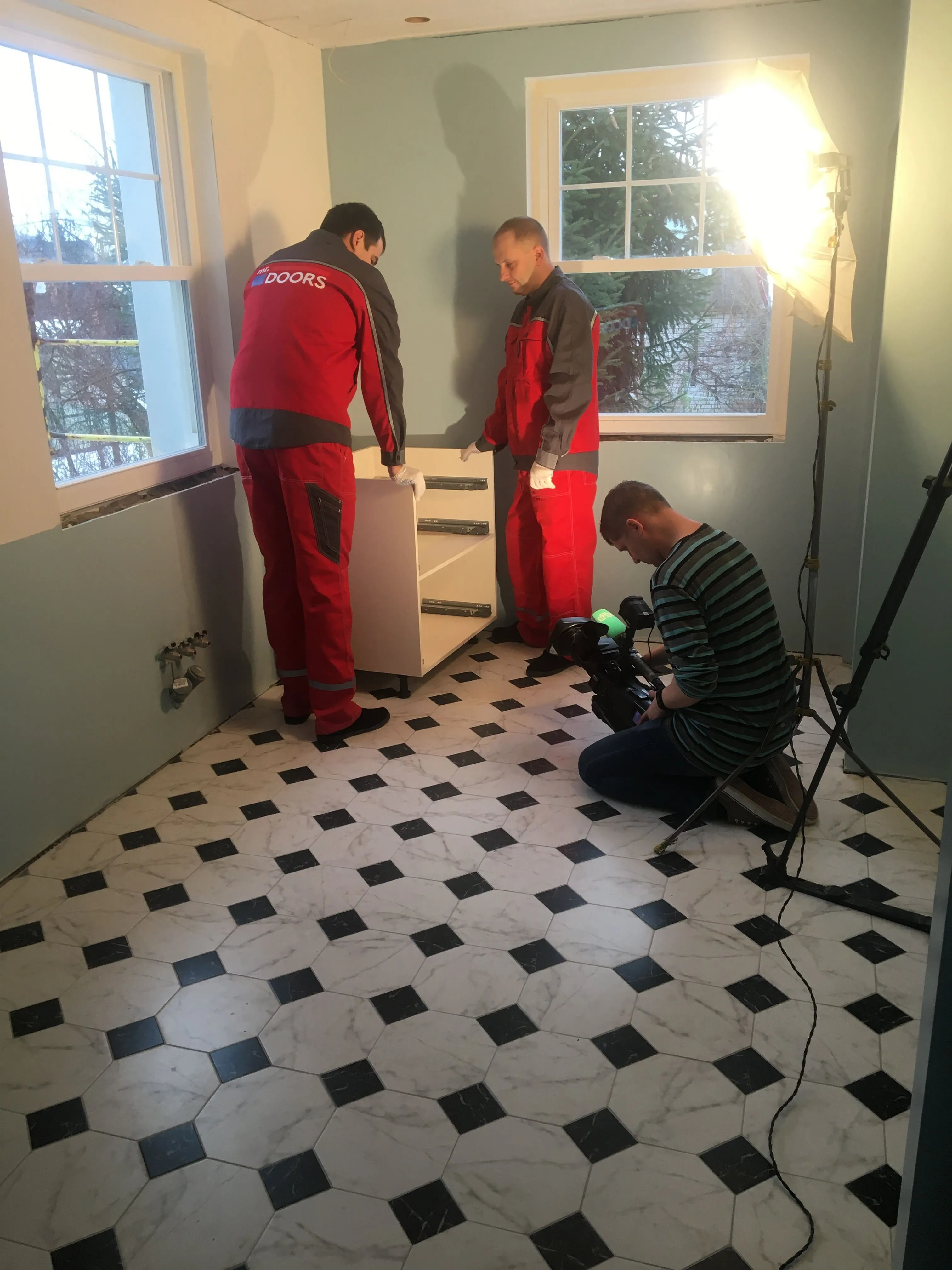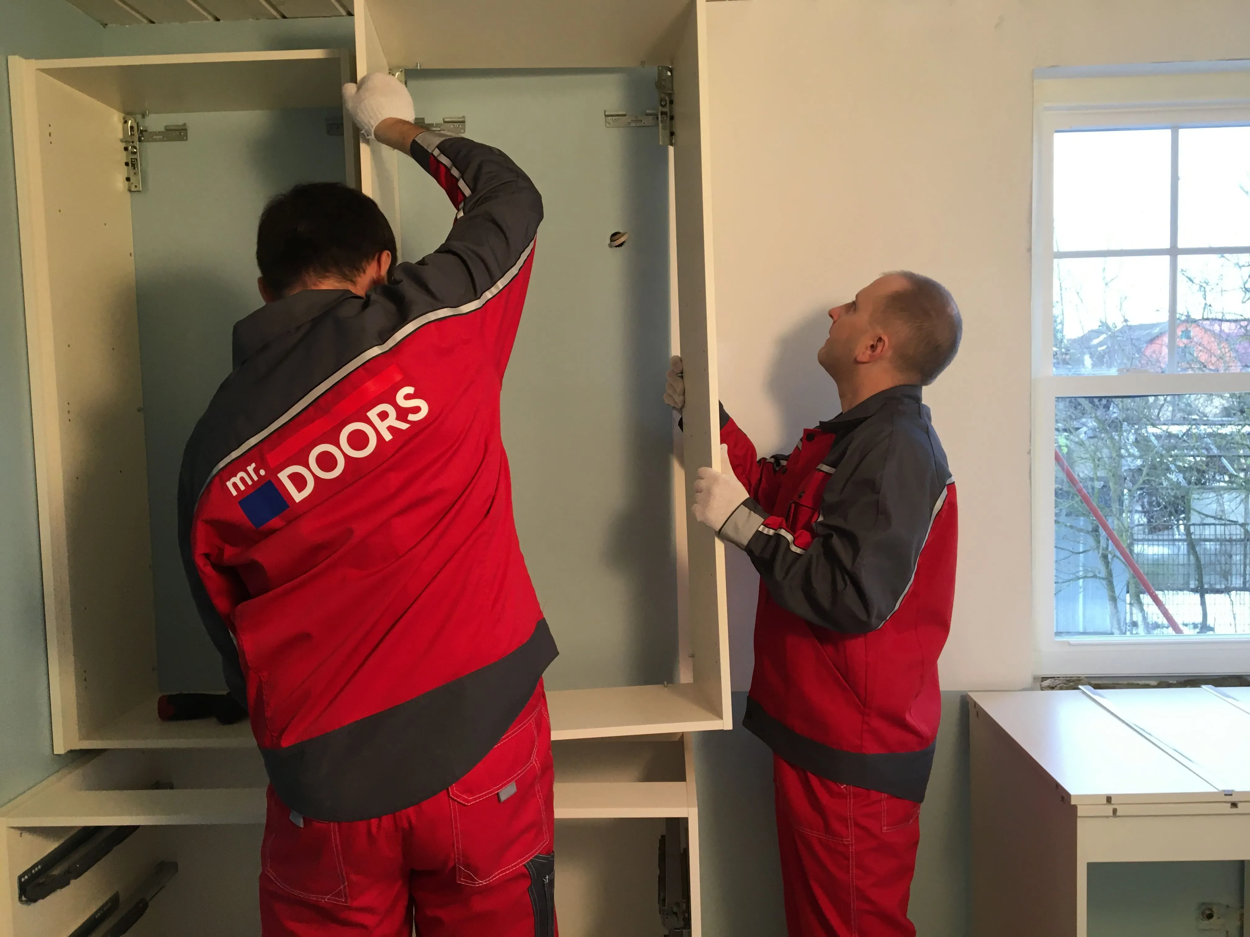 Но, «глаза боятся, а руки делают», и за месяц с небольшим были переделаны полы, потолки, передвинуты стены и заново проведены коммуникации. То есть, подготовка к нашему этапу работ завершена. Сложность была в нестандартном размере, но это как раз команде Mr.Doors по плечу, ведь мы спецы именно по индивидуальным проектам и смогли прекрасно вписать кухню в имеющийся размер.