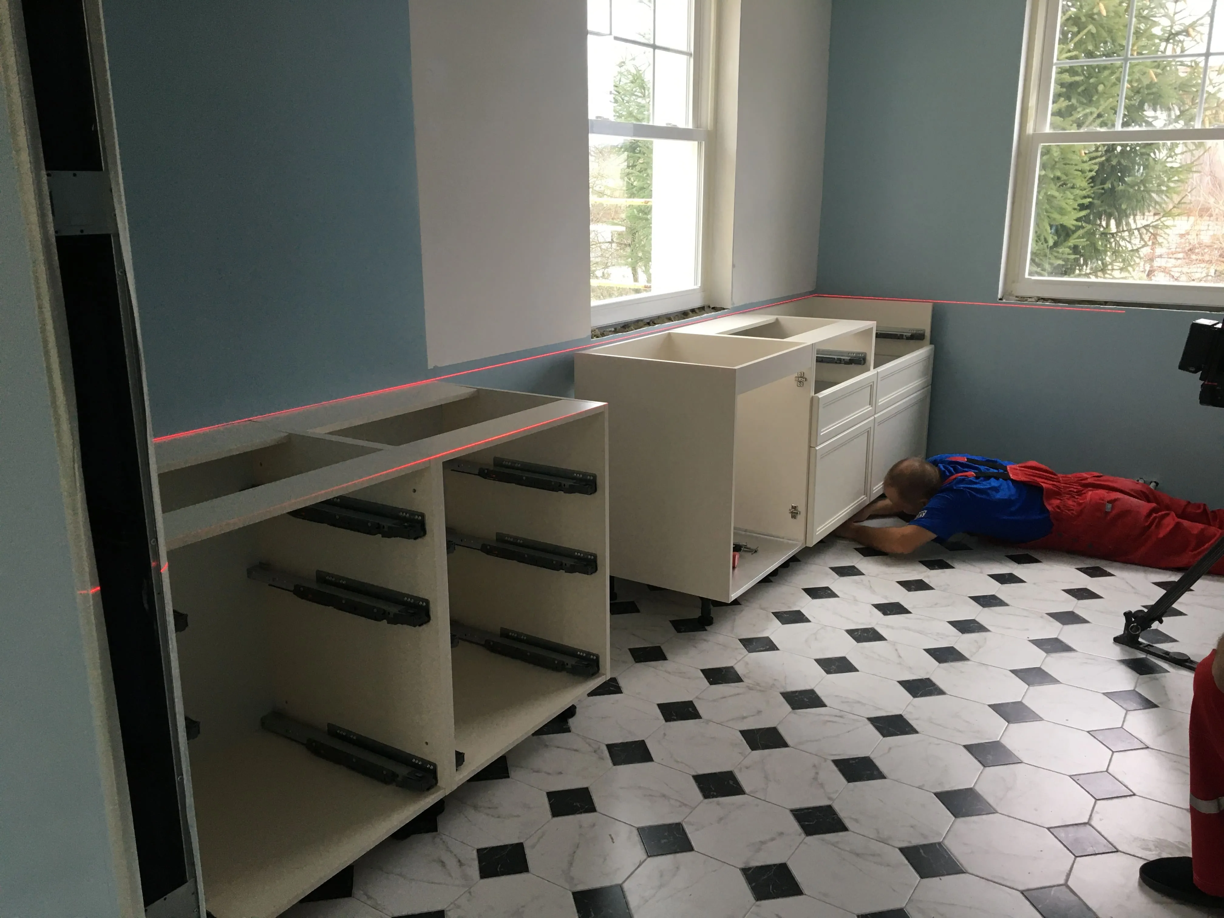 Далее – выравнивание модулей лазерным уровнем.