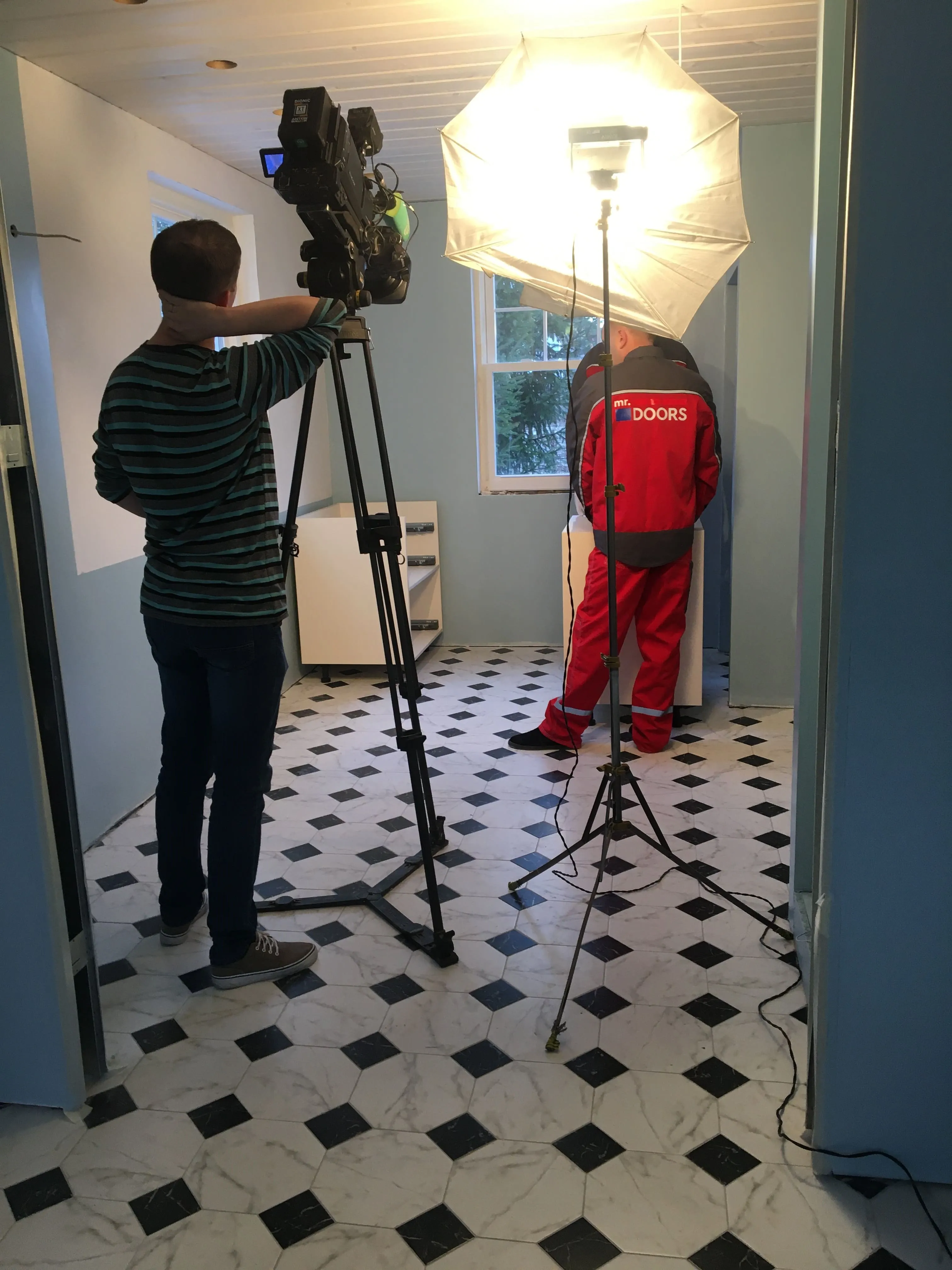Команда сборщиков в составе Ильи Ершова и Максима Астахова внимательно выслушивает наставления тренера перед началом съёмочного процесса. Заодно демонстрирует новый фирменный стиль компании.