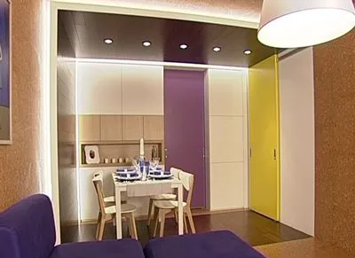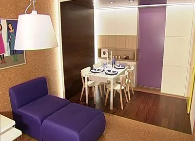 В очередной программе "Квартирный вопрос" переделывалась гостиная. Дизайнер Милла Резанова условно поделила пространство на две зоны: столовую и мягкую диванную. В первой - стены, пол и потолок отделали паркетной доской со шпоном экзотического дерева каслин, а во второй – натуральной португальской пробкой. Корпусная и встроенная мебель в помещении изготовлена специалистами компании Mr.Doors.