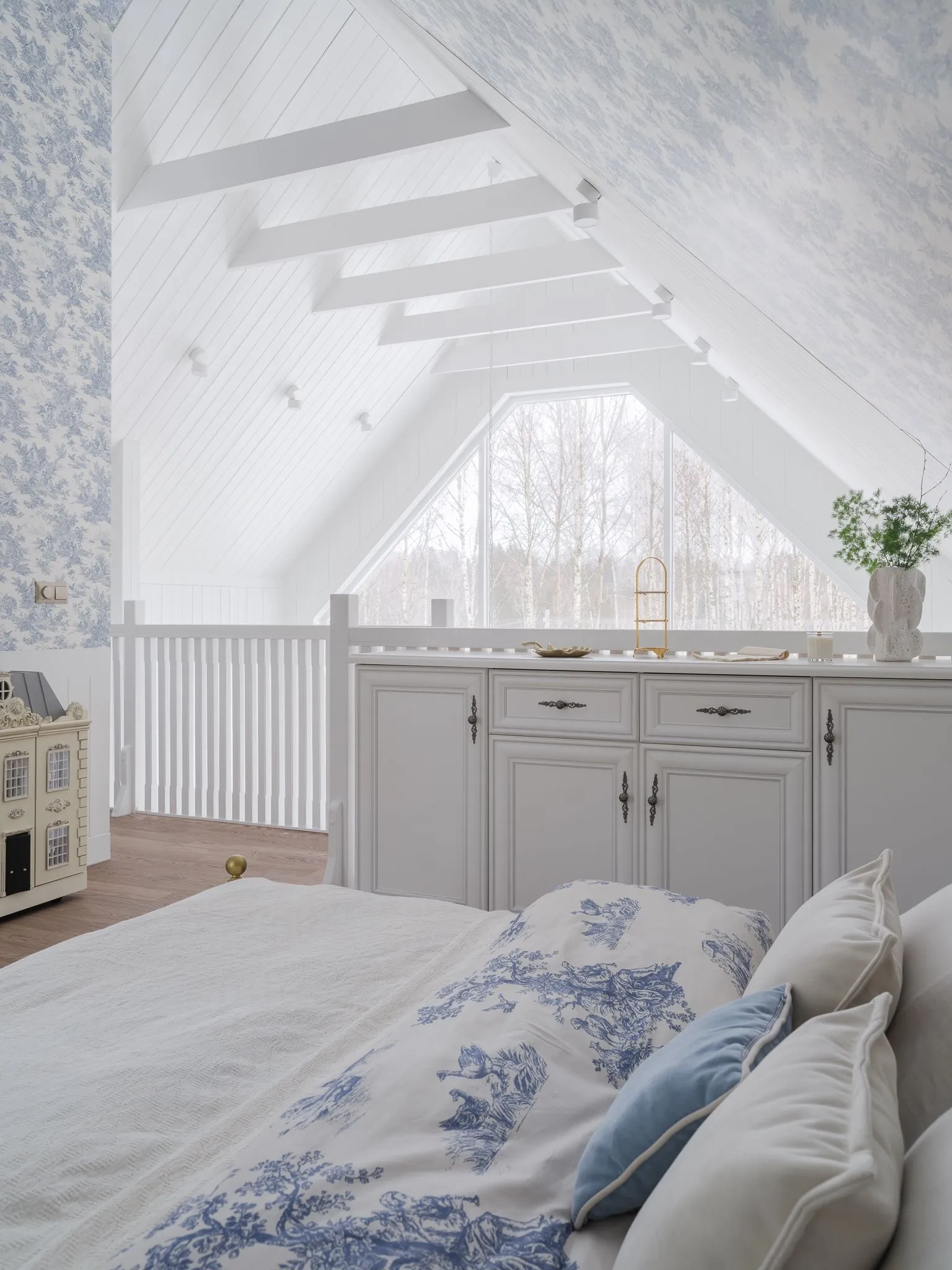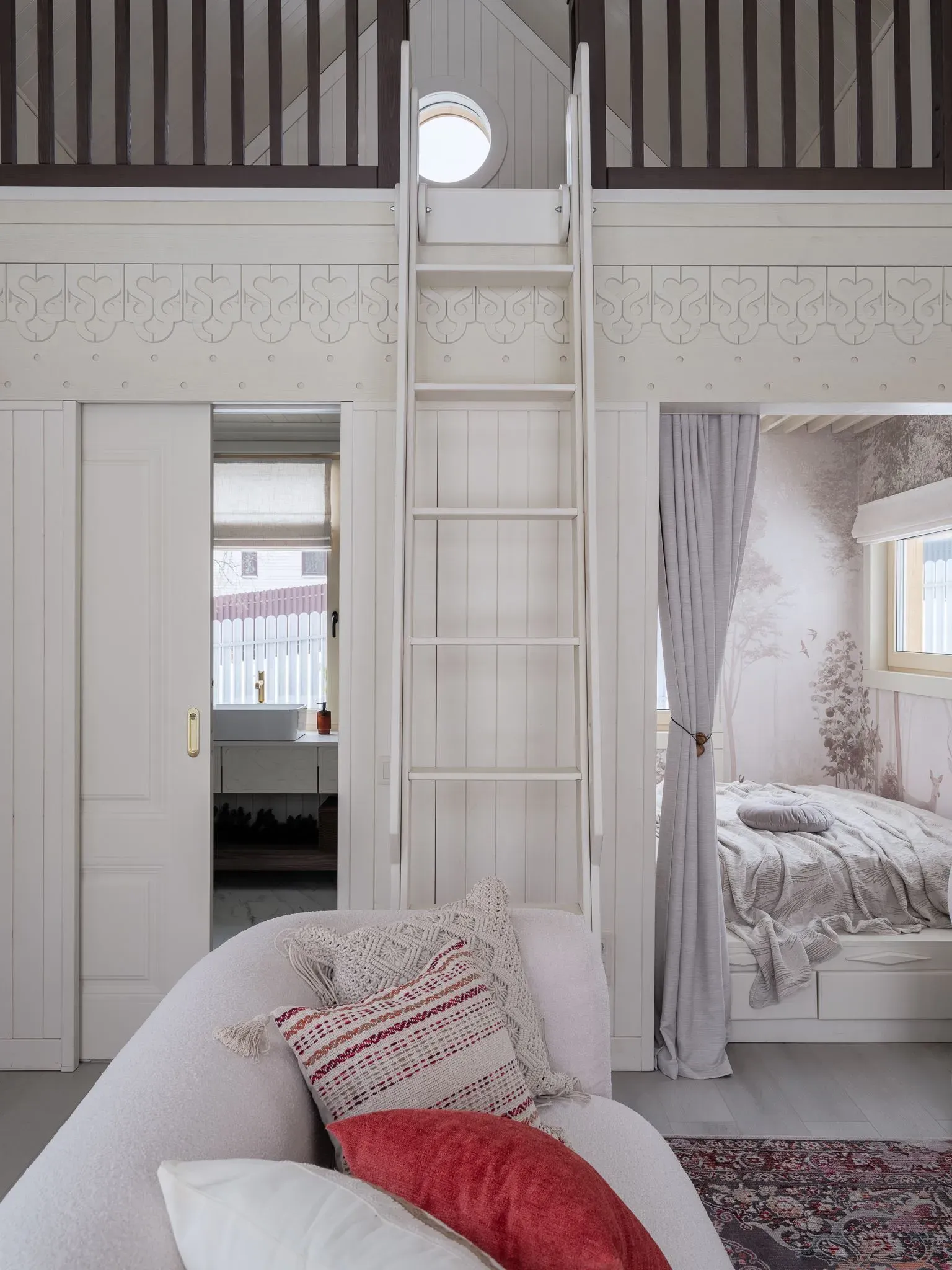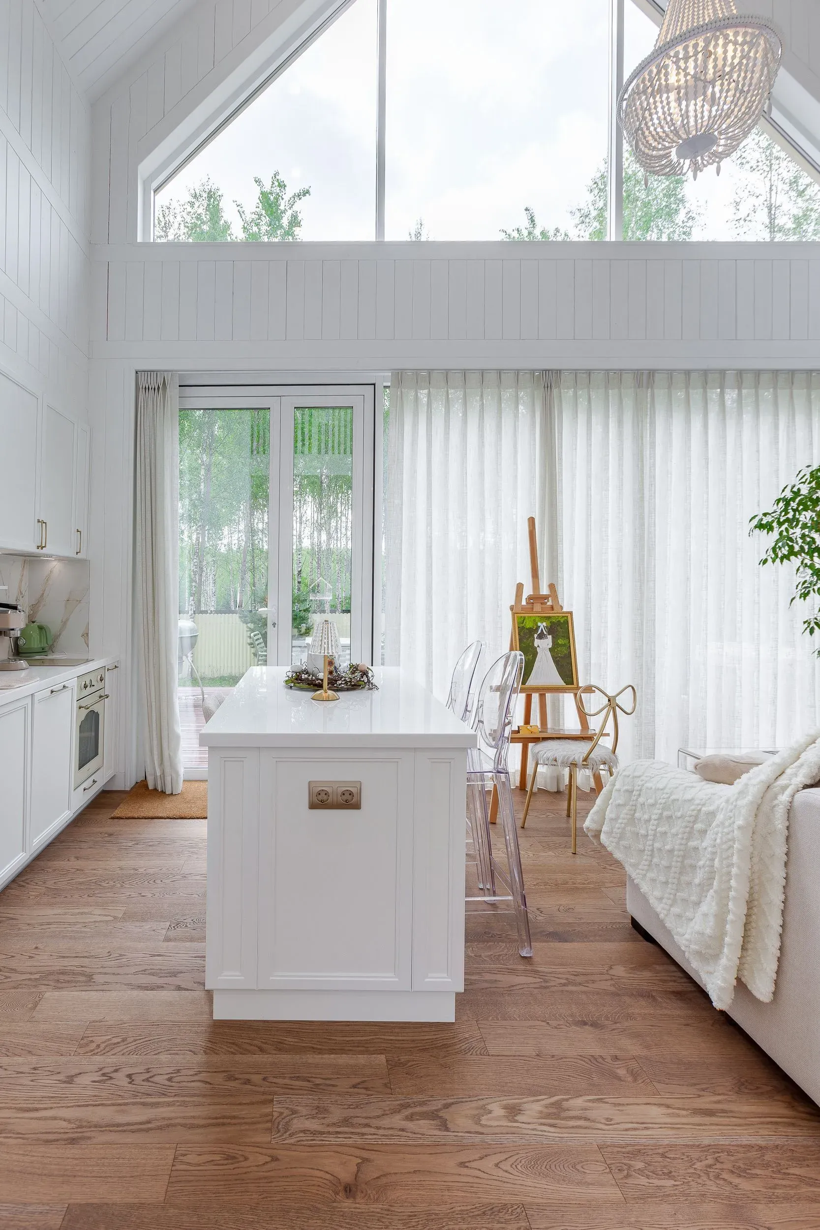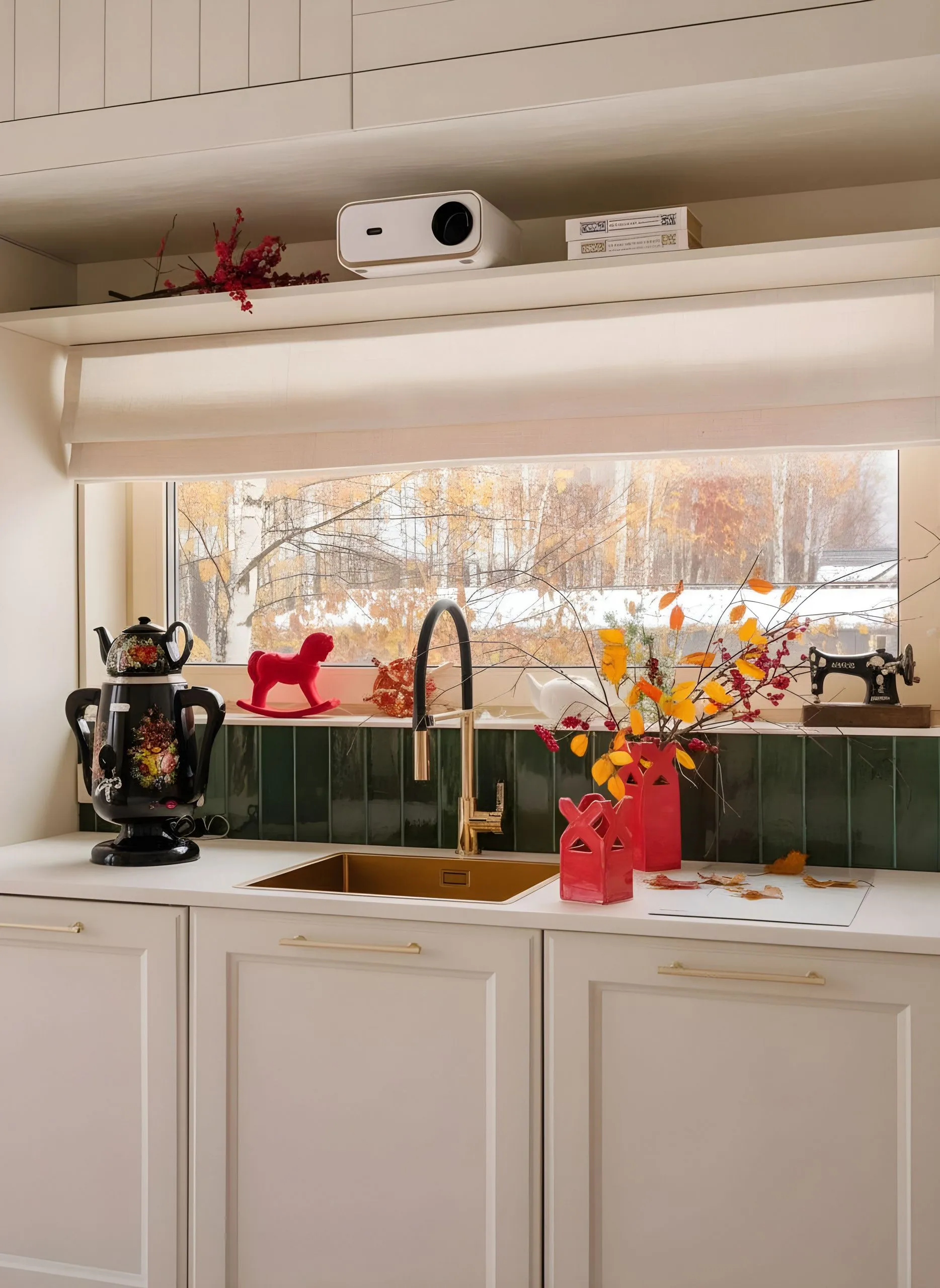 Для этого пространства мы создали две ключевые кухни из коллекции Urban, где функциональность и эстетика идут рука об руку. Особое внимание было уделено деталям, продиктованным образом жизни заказчицы. Например, специально спроектированная ниша позволяет, не вставая со стула, легко дотянуться до необходимой утвари, превращая процесс готовки в более комфортный ритуал. Открытые полки в английском стиле служат не только для хранения изысканного фарфора, но и становятся важным декоративным элементом, подчёркивающим общую тёплую эстетику.